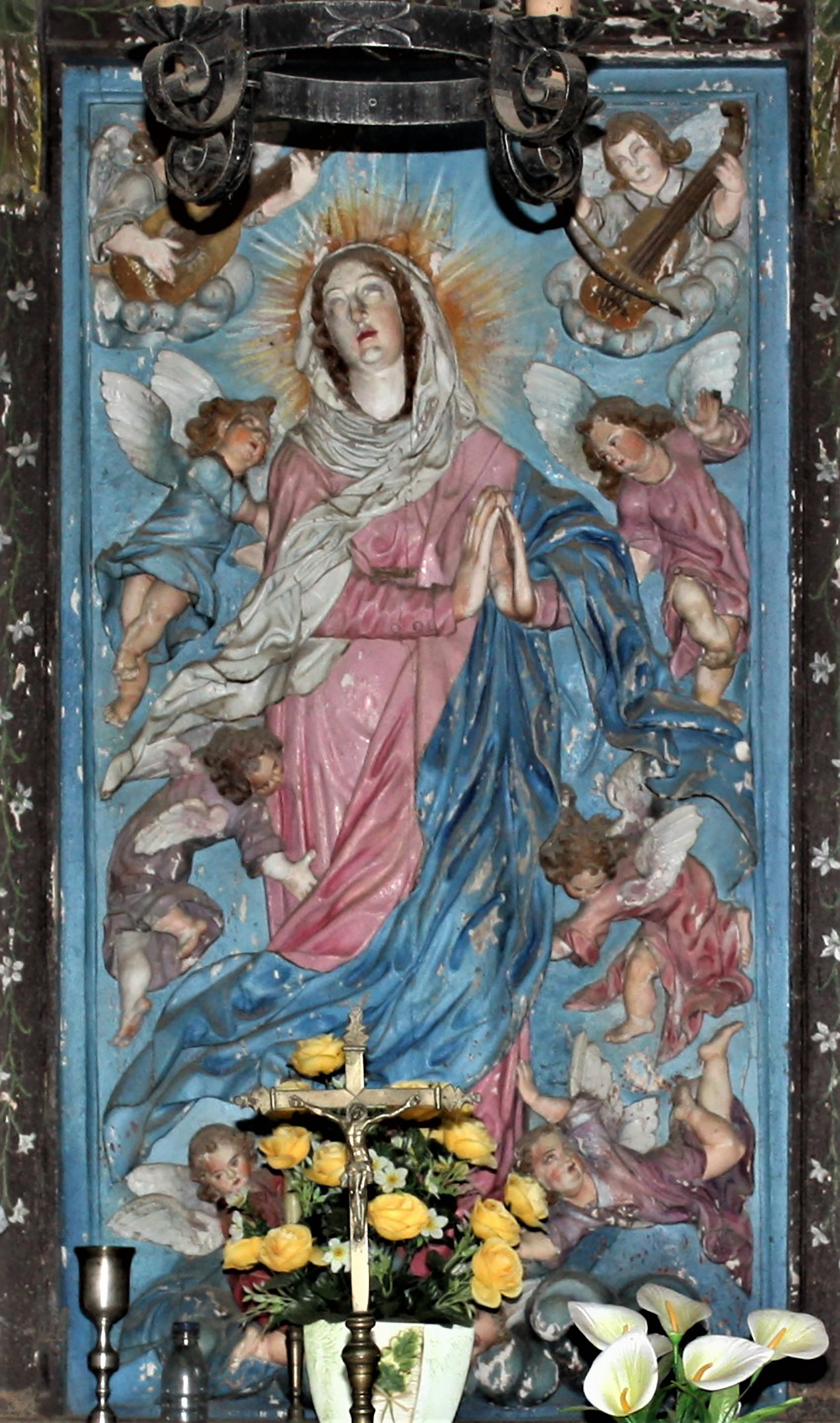 La capilla conserva un bajorrelieve ubicado sobre el altar. Se trata de una pieza de madera policromada, atribuida a Francisco de Moure (escultor gallego que trabajó en el monasterio e Samos) que representa la Ascensión de la Virgen a los cielos. La talla se organiza en torno a la figura central de la virgen, cuyo manto azul define una diagonal dinámica gracias a sus pliegues. Alrededor de ella se organizan las demás figuras, adaptándose al marco, adoptando para ello magníficos escorzos que trazan líneas imaginarias que convergen en la figura principal.