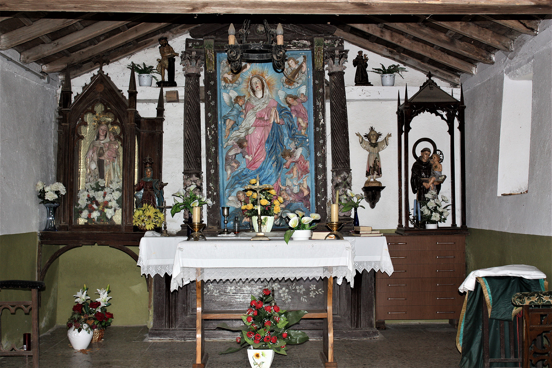 Además del retablo, el repertorio iconográfico de la capilla se completa con una talla en madera de un Ecce-homo, una Virgen coronada y un San Antonio. A las que se suman obras que se podrían fechar en el siglo XX, como las imágenes de la Virgen del Carmen y de San Antonio, ubicadas en una hornacina y un baldaquino neogótico, respectivamente. De la misma época es una talla del Niño Jesús que se sitúa en otra de las peanas.