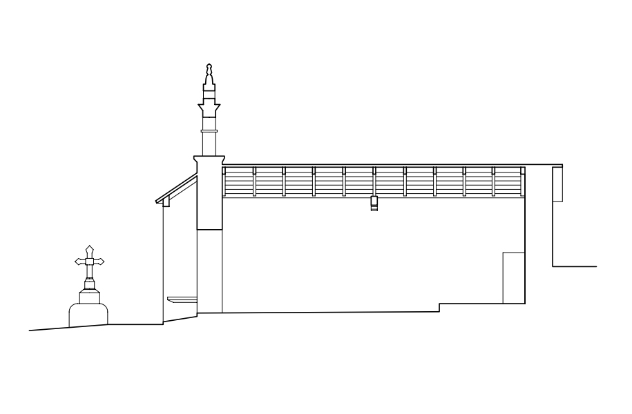 Sección del interior de la capilla y peto de ánimas. (José Antonio Franco Taboada, Santiago Tarrío Carrodeguas (dirs.),
