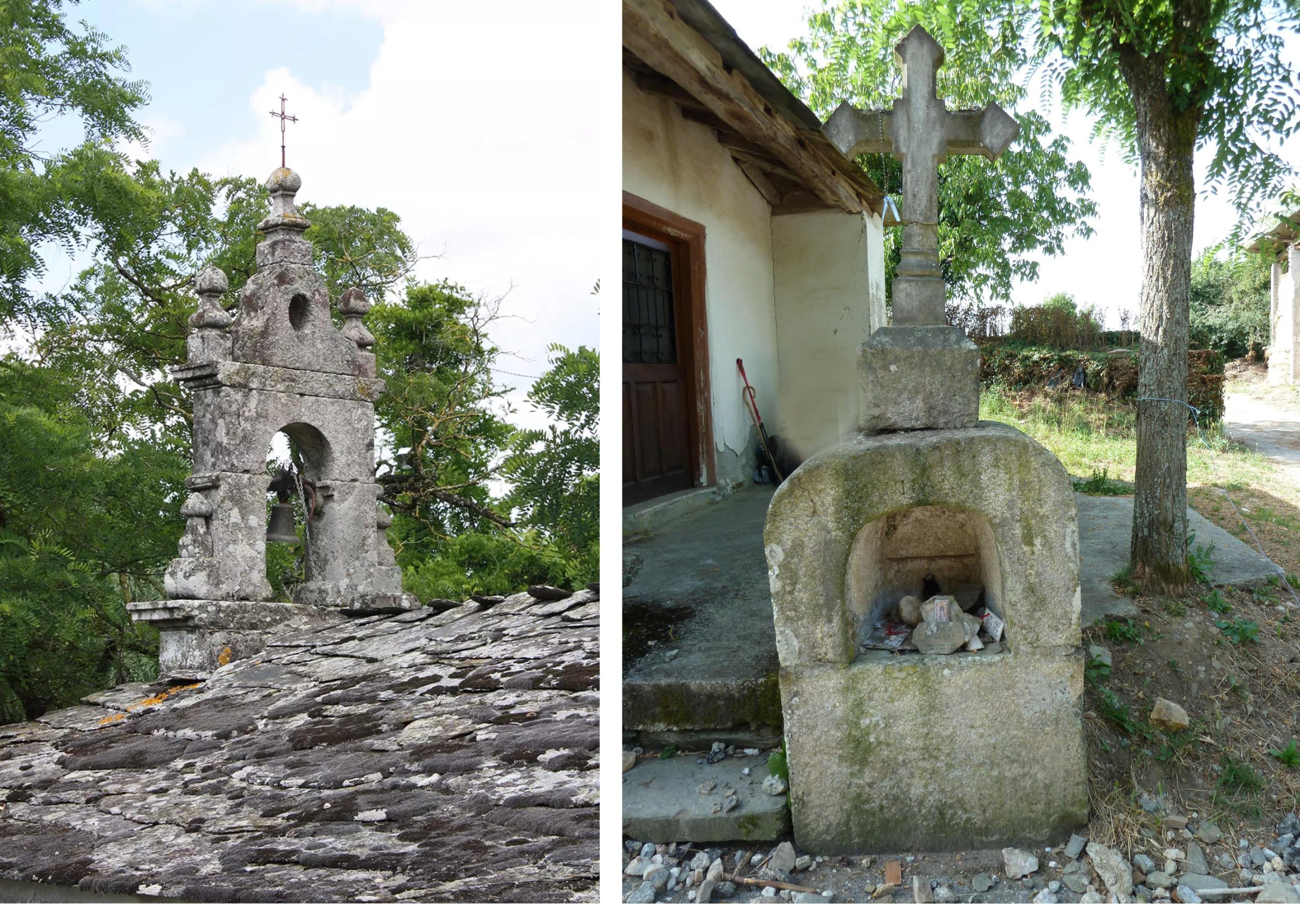 Detalle de la espadaña de la iglesia y del peto de ánimas próximo.