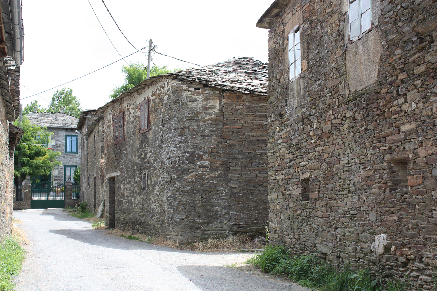 En la parte alta de la población se encuentra la capilla de Nosa Señora da Asunción del siglo XVIII. En algunas publicaciones esta capilla se llama también da Virxe do Carmen o da Virxe do Camiño. La población tiene la estructura típica de un poblado de vereda extendido sobre las márgenes del camino; a uno y otro lado se levantan las casas de labranza con sus edificaciones auxiliares, que están construidas al modo tradicional con madera y piedra pizarrosa de procedencia local. Todavía queda recuerdo vivo de la existencia de una antigua taberna llamada do Camiño, que estaba adosada a la casa do Hospital.
