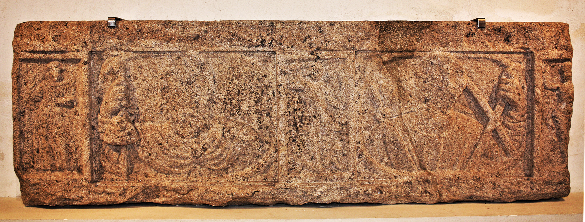 | Bajo relieve con los bustos de Santiago y san Andrés. |