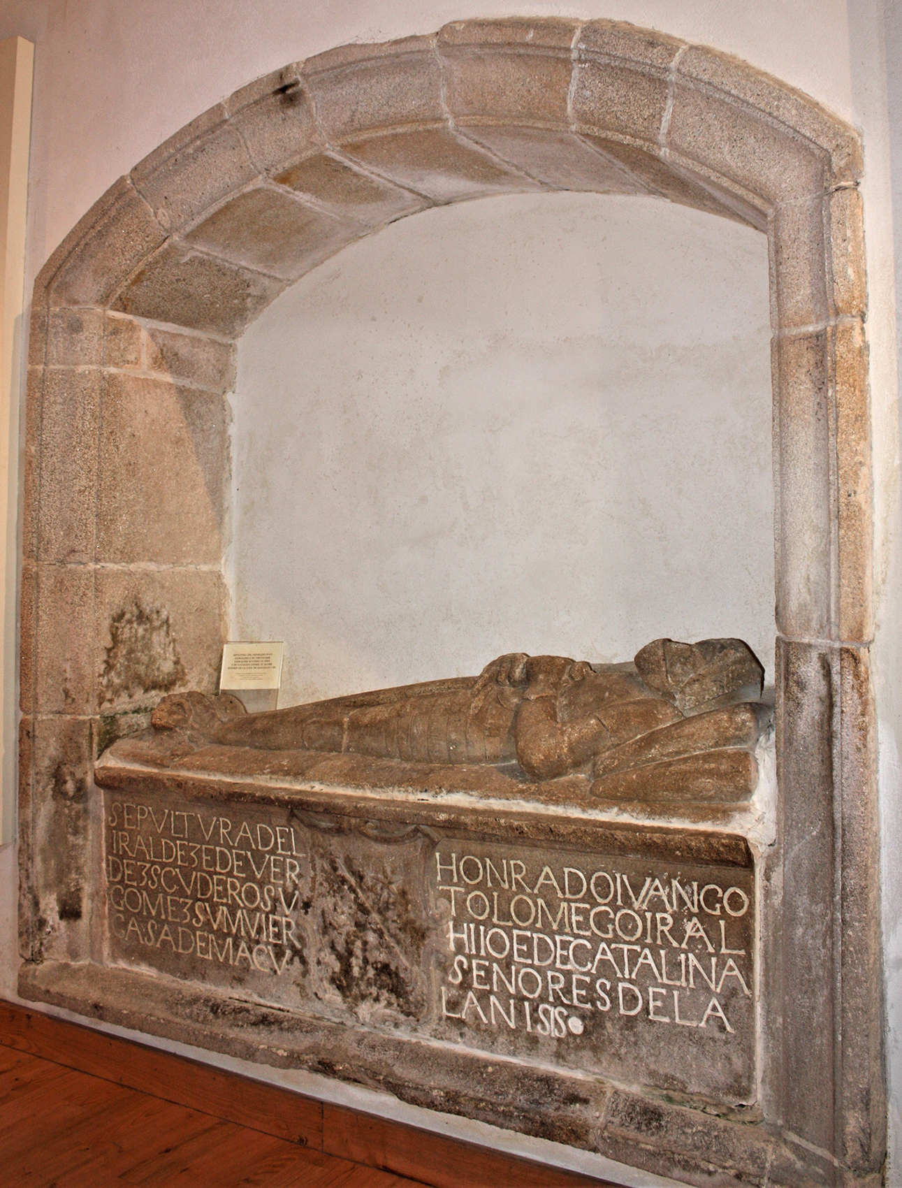 El arcosolio de este sepulcro conserva restos de policromía. Sobre la cubierta del sarcófago se colocó la figura sedente del caballero, en posición decúbito supino, vestido con yelmo y armadura; apoya la cabeza sobre dos cojines y arrima los pies al cuerpo de un león. Sostiene la espada sobre el cuerpo con la empuñadura cogida con ambas manos a la altura del pecho.