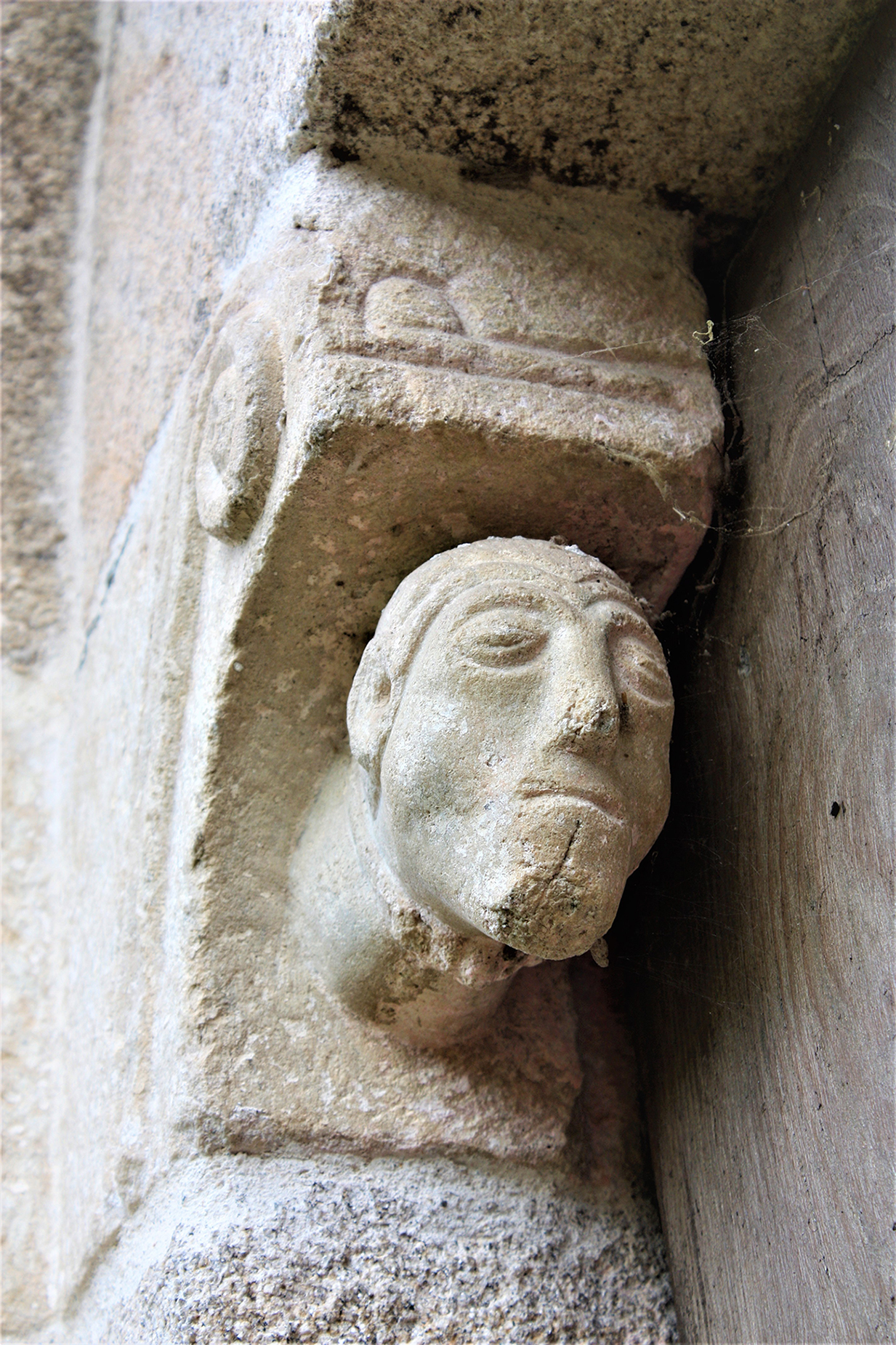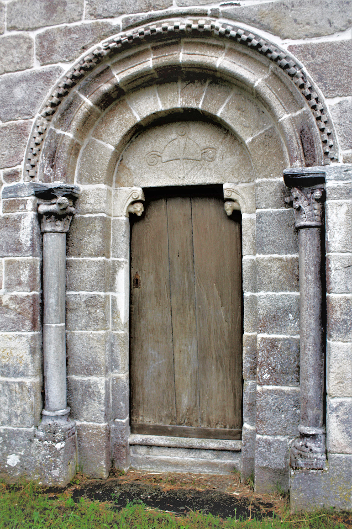 El arco de la vuelta exterior está decorado con baquetón y escocia y el arco descarga sobre capiteles ornamentados: el izquierdo con hojas de acanto y, el del lado derecho con un juego de formas, de tal manera que dos figuras cuadrúpedas se encuentran en el centro en una cabeza única que sobresale del marco. A sendos capiteles le suceden fustes de sección circular que descansar sobre base ática y alto plinto. Todo el conjunto está rodeado por una chambrana con decoración de billete. Las ménsulas que sobresalen del muro, por encima de esta portada, indican que en algún momento contó con un pórtico. La entrada del lado sur, ahora tapiada, tan solo puede distinguirse el perfil de su vano con una puerta muy estrecha con jambas lisas y arco de pedio punto que, en el exterior, arrancaba a partir de dos sencillas ménsulas a paño con el muro.
