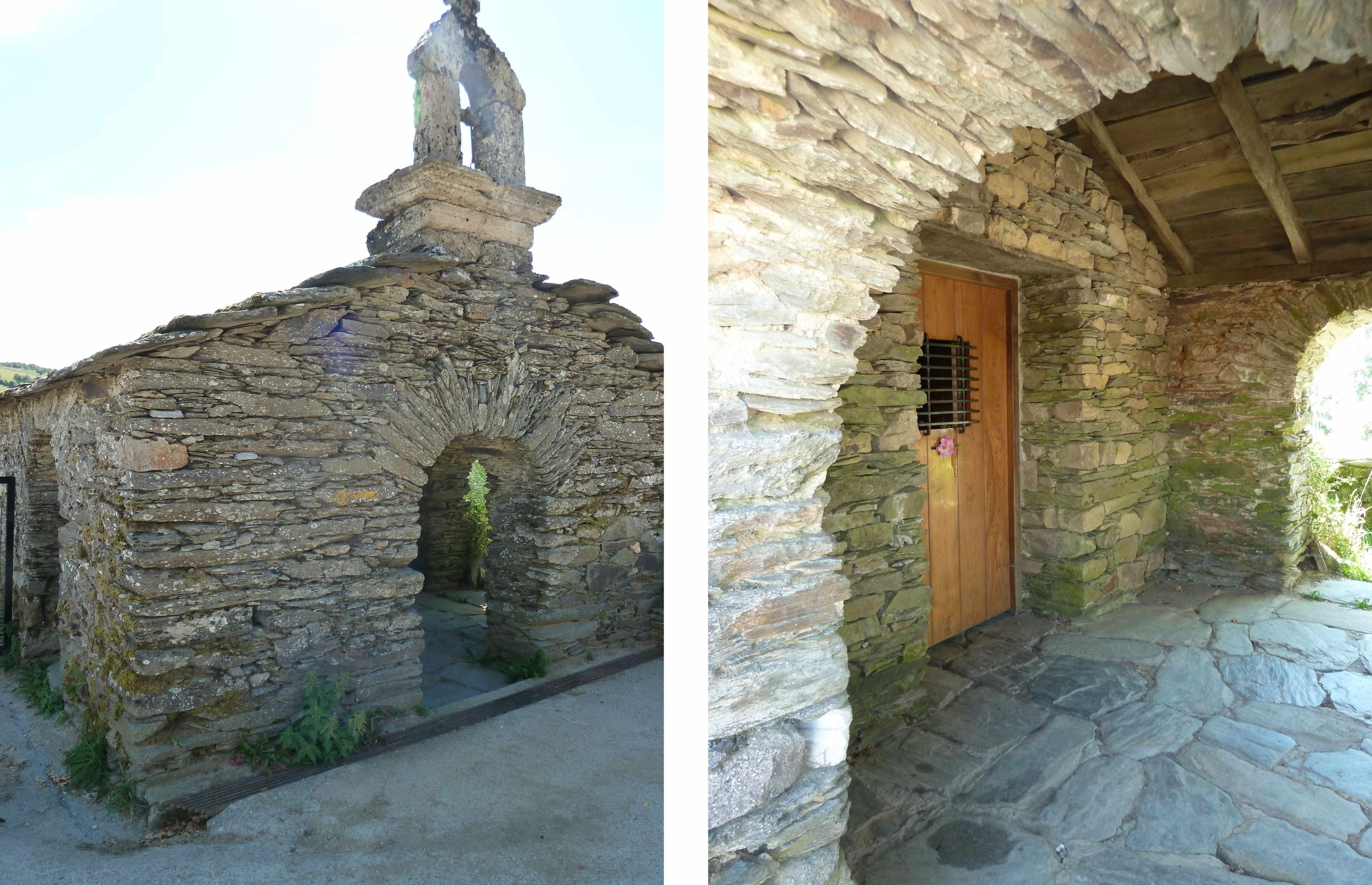 Atrio de la ermita (izquierda) y detalle del interior del atrio (derecha).