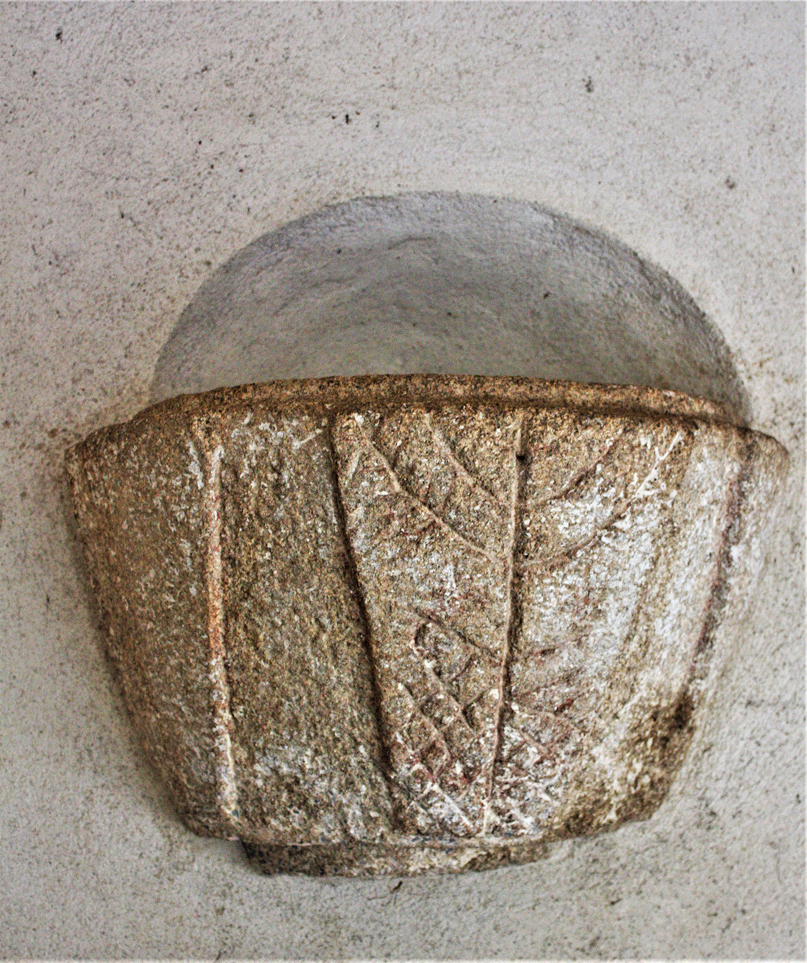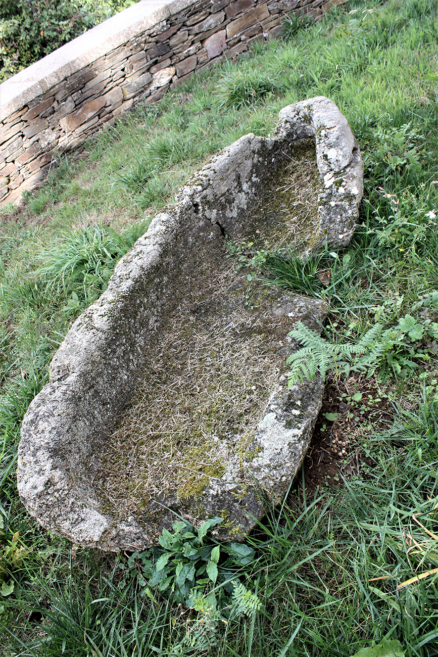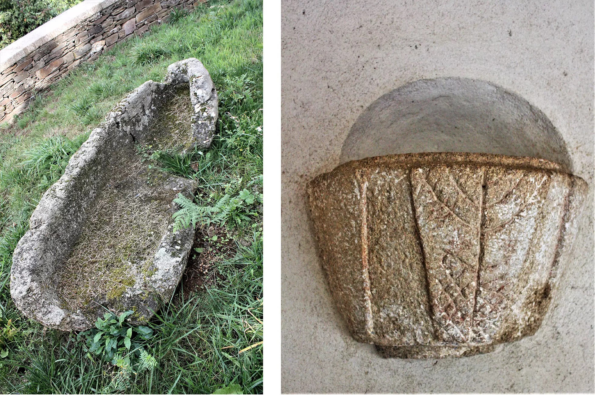 | Sarcófago pétreo en el cementerio de San Mamede y pila bautismal en la misma iglesia. |