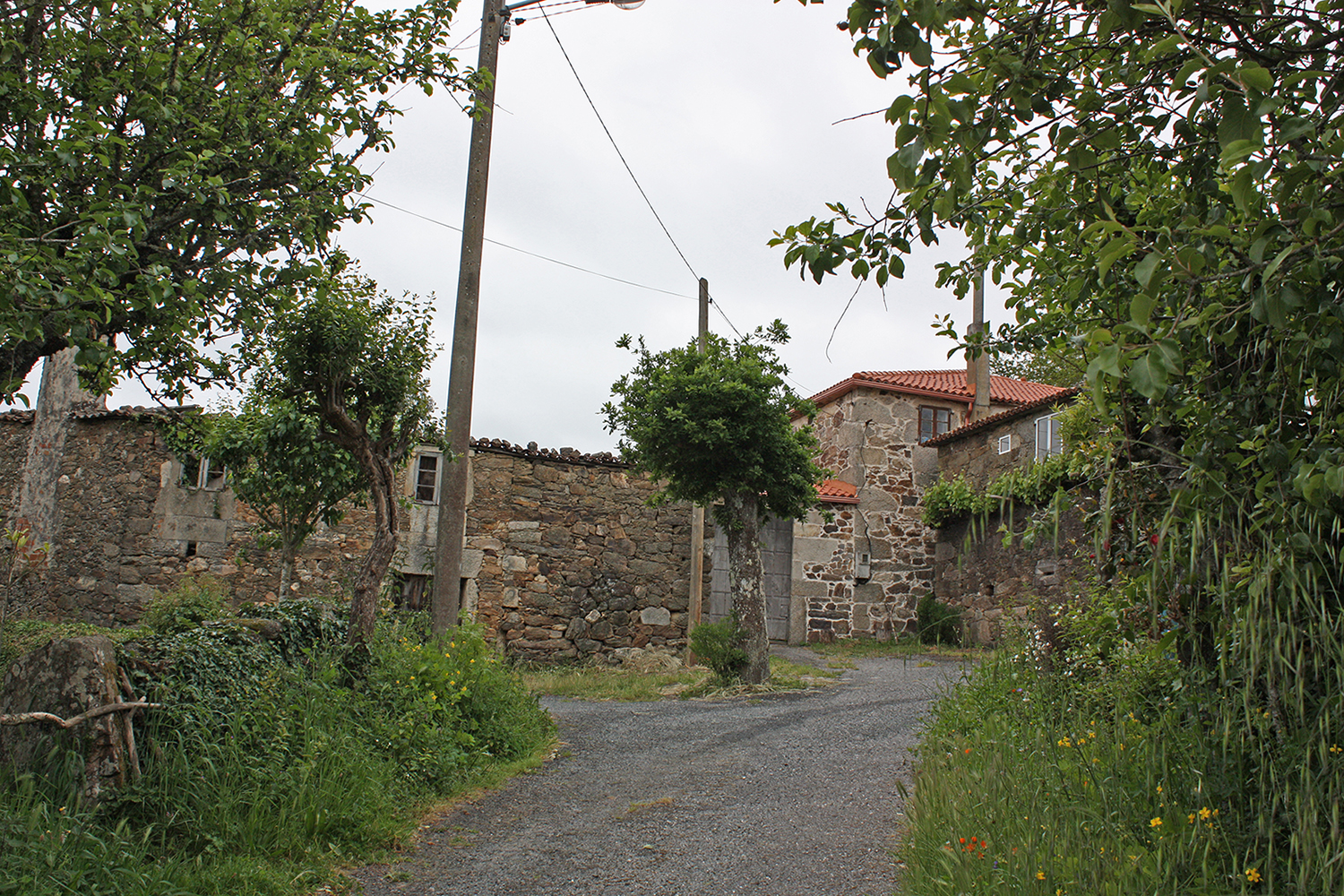 El conjunto constituye un grupo de casas de labradores, construidas al modo tradicional con mampuestos de gneises y granito, cubiertas de teja y carpinterías de madera. Algunas casas tienen grandes portalones de entrada que dan paso a patios entorno a los cuales se distribuyen los pajares, las eras y los hórreos, que aquí son estrechos y alargados con el cuerpo de madera y piedra sostenidos sobre pies corridos de granito.