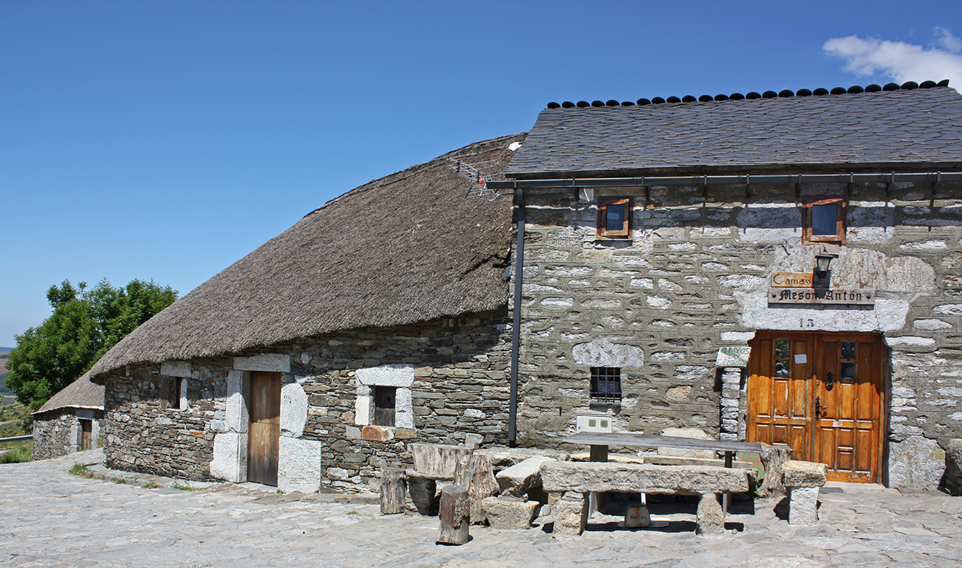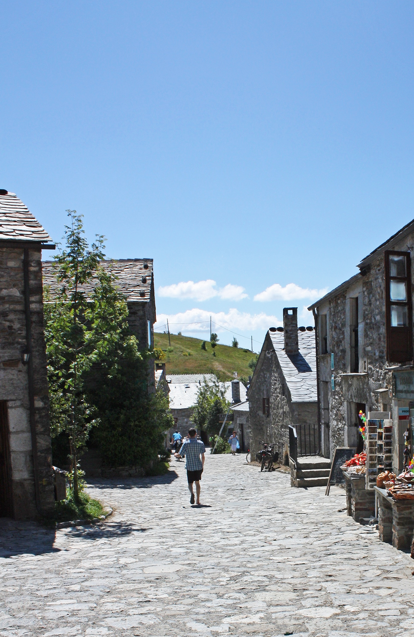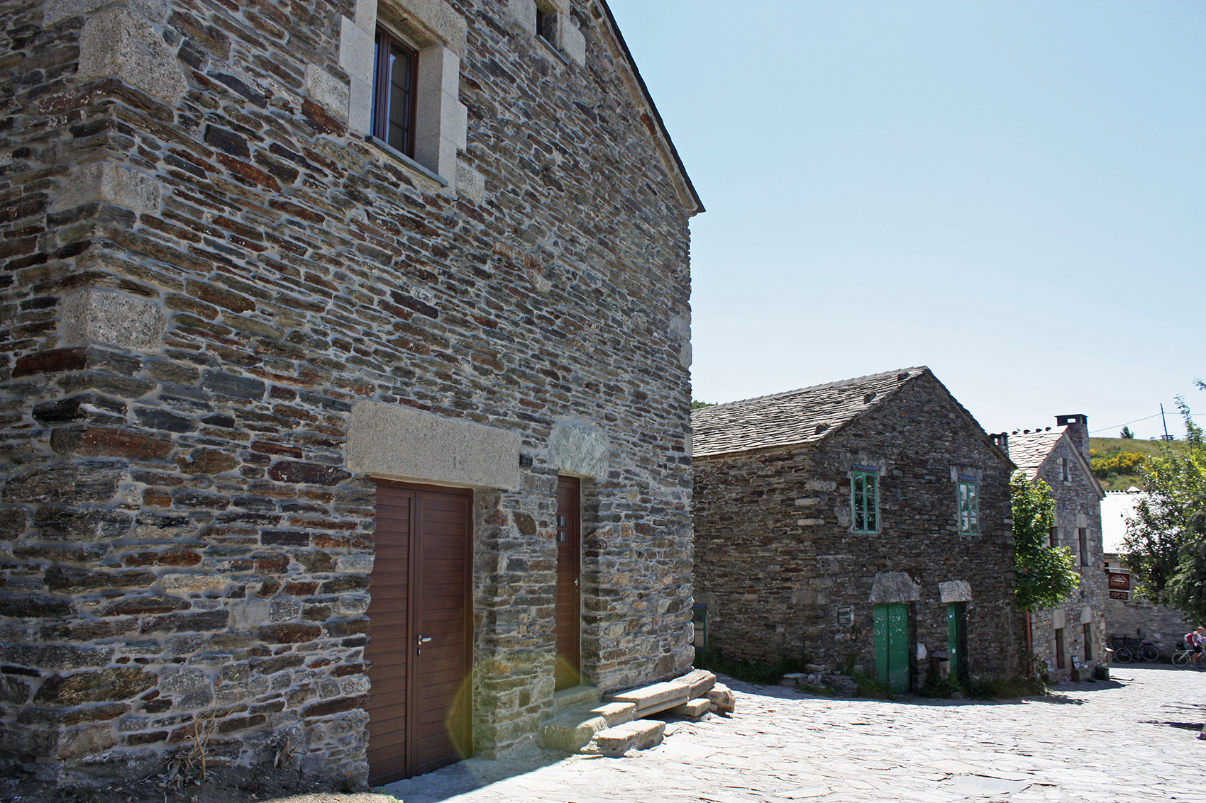 Al oeste del recinto del antiguo monasterio se extienden las casas de la población, organizadas en torno al eje central del Camino Francés que en este tramo aparece empedrado. Casi todas las casas han sido recientemente restauradas y algunas de ellas se han edificado de nuevo; la mayor parte son de planta cuadrangular y se les ha añadido un piso alto, todas están construidas con mampuestos de procedencia local, madera y losa de pizarra, que se emplea en los tejados en sustitución de las antiguas cubiertas de entramado vegetal. Lo que fueron mayormente casas de labradores, se han reconvertido en hostales, tiendas y restaurantes para los viajeros y peregrinos actuales. Al lado de este tipo de edificaciones, llaman poderosamente la atención las “pallozas”, que son las viviendas tradicionales restringidas a esta zona de la alta montaña lucense, que reúnen gran interés etnográfico.