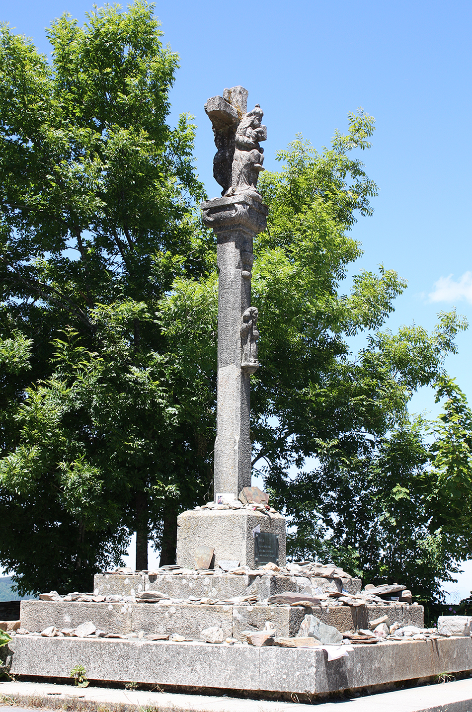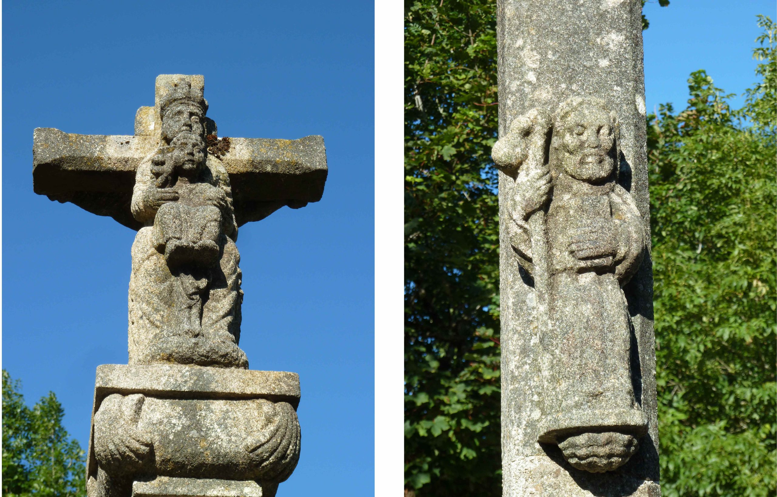 y del relieve de Santiago peregrino en el fuste del cruceiro (derecha). |