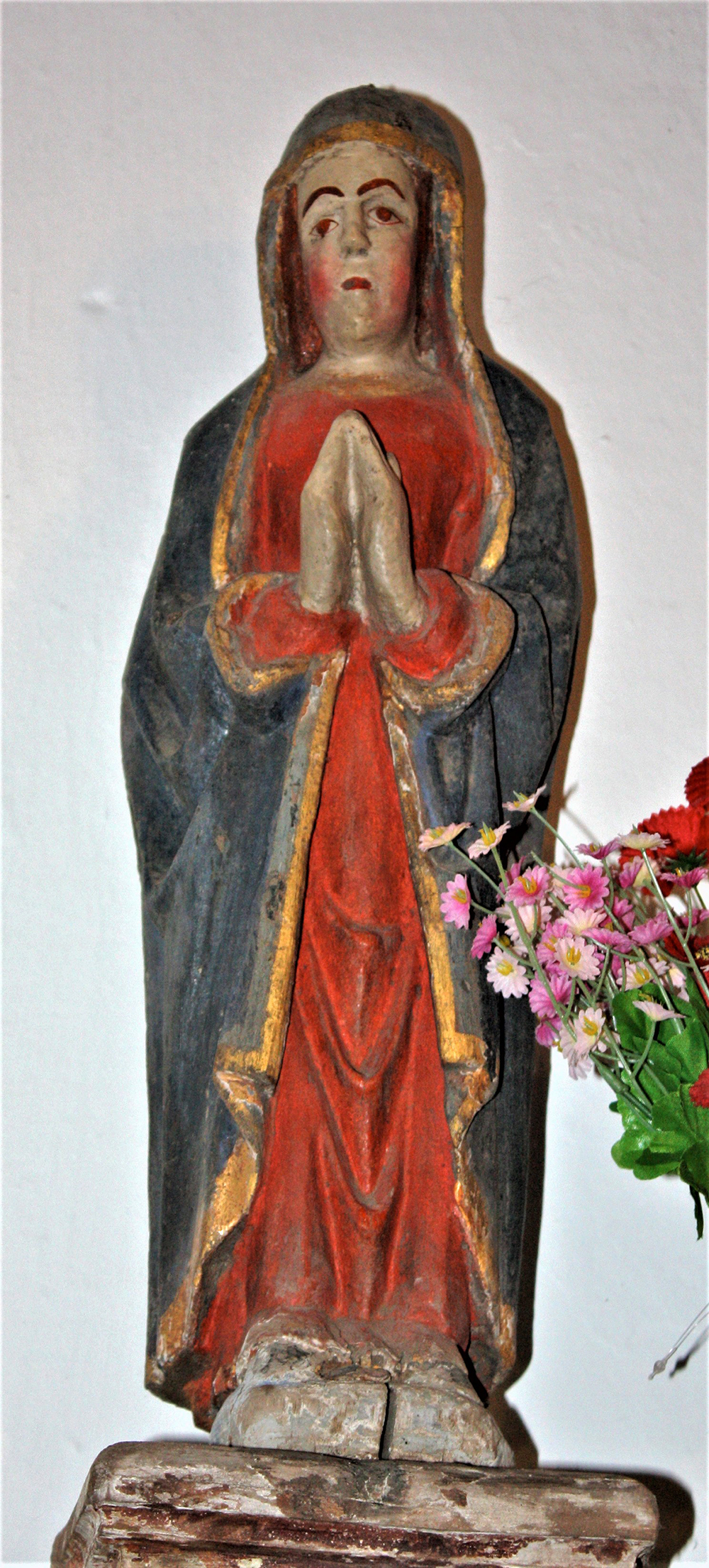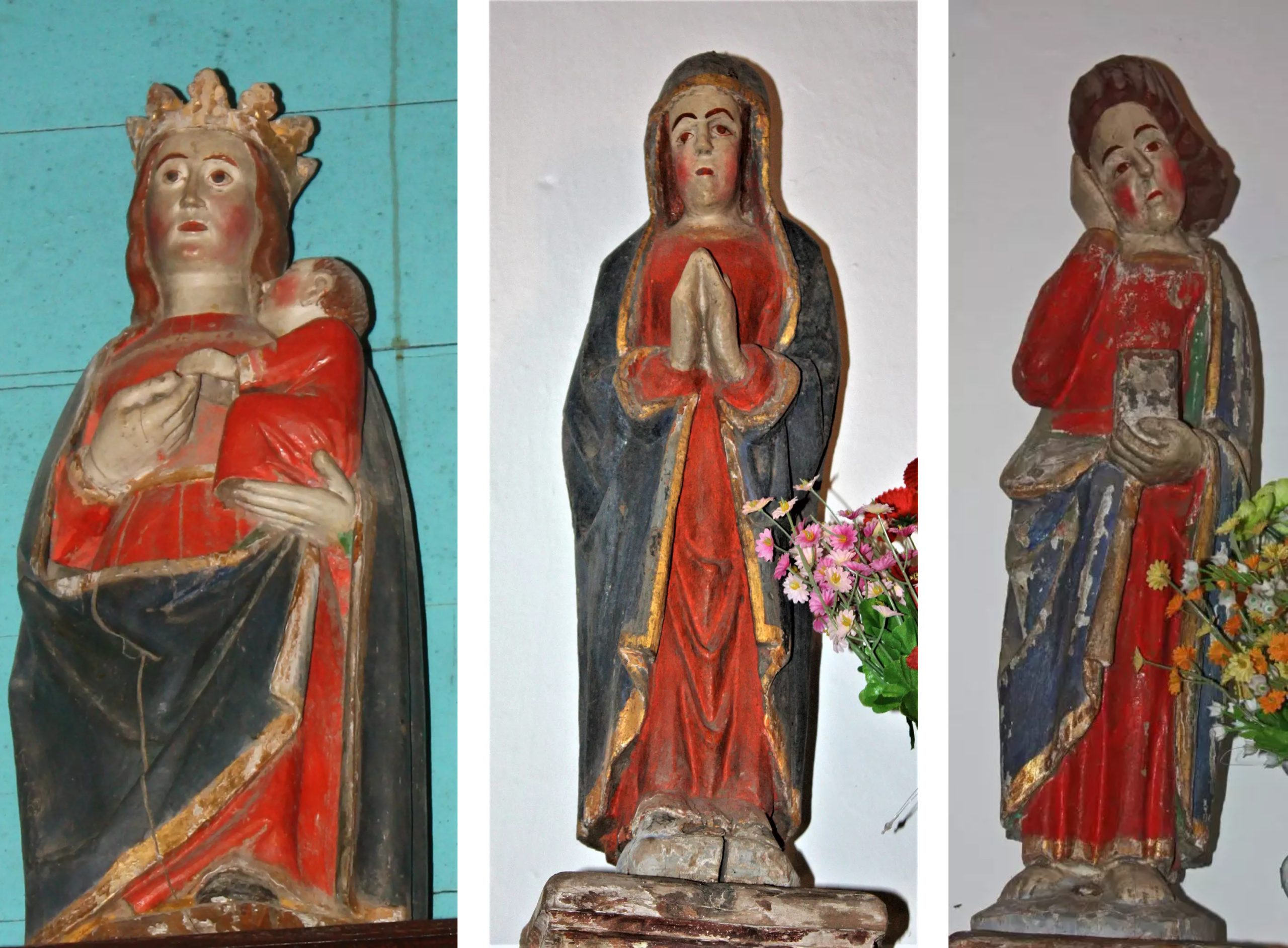 | Virgen coronada (izquierda), Virgen Dolorosa, perteneciente al conjunto de un antiguo calvario (centro)