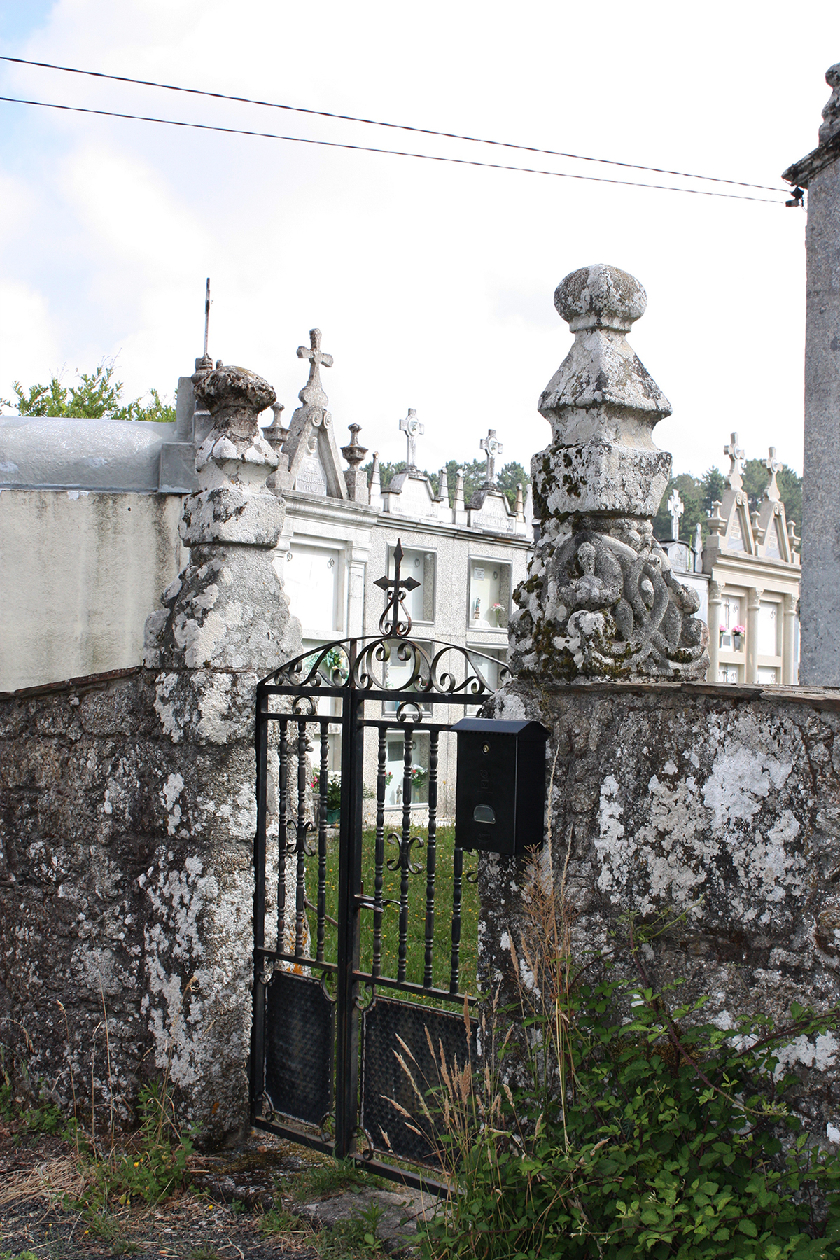 Capiteles románicos, reutilizados en la entrada del atrio de San Paio de Figueiroa. |