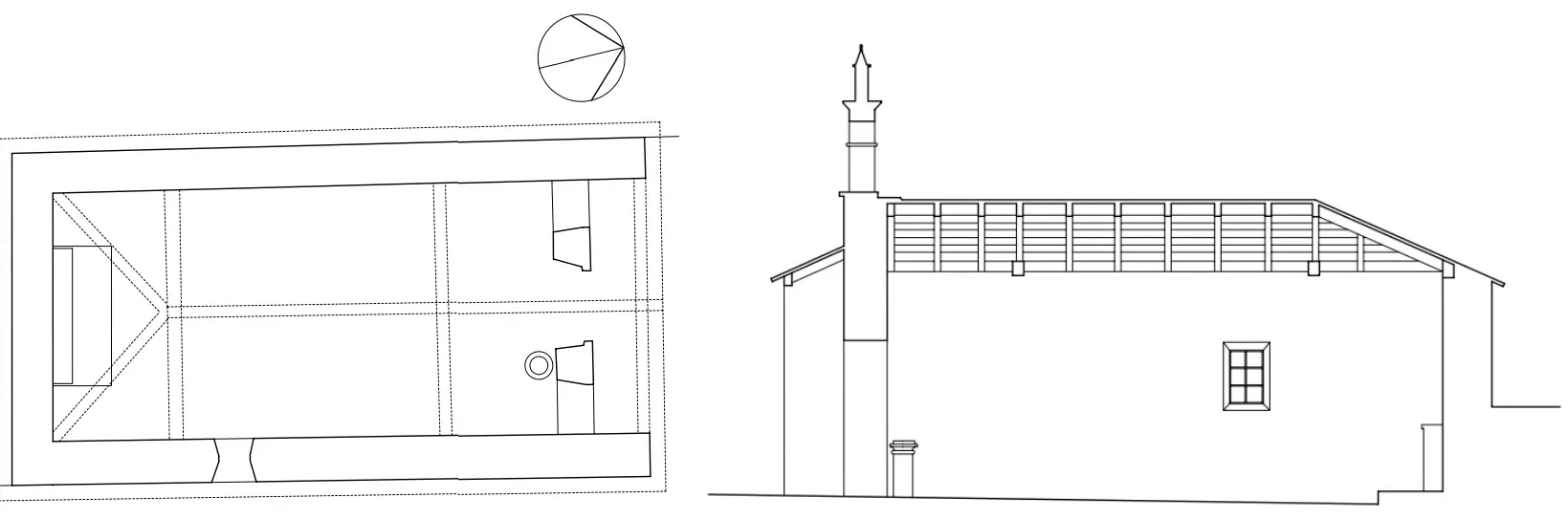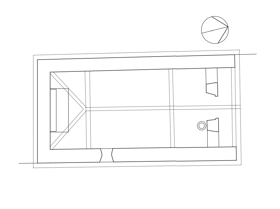 | Planta y sección longitudinal de la capilla. |