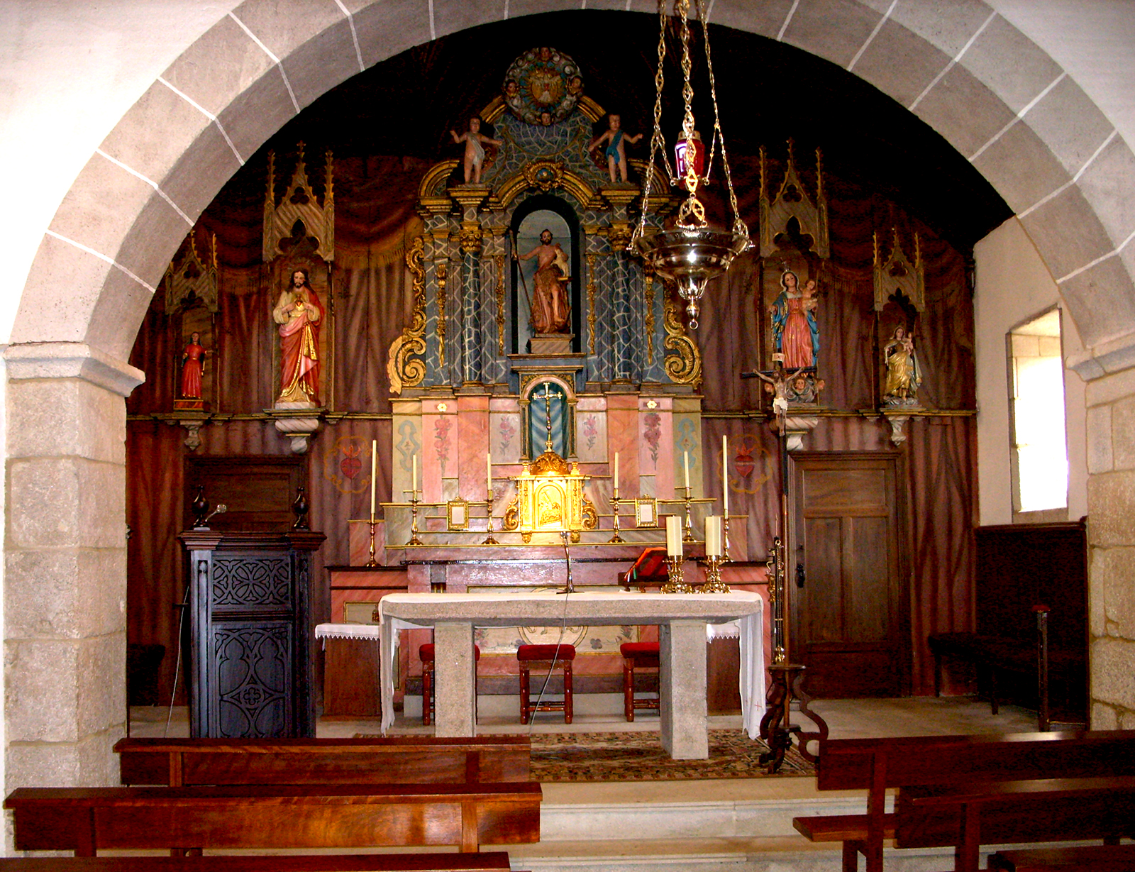 En la capilla mayor se ubica un retablo diseñado como una puesta en escena que aprovecha el muro que la separa de la sacristía para situar el programa iconográfico. Este, de estilo rococó se fecha a los años finales del siglo XVIII. En la capilla mayor la familia de los Varela, que habitaron el Pazo de Furelos entre los siglos XVI y XVII, tuvieron sepultura provista con su correspondiente escudo de armas.