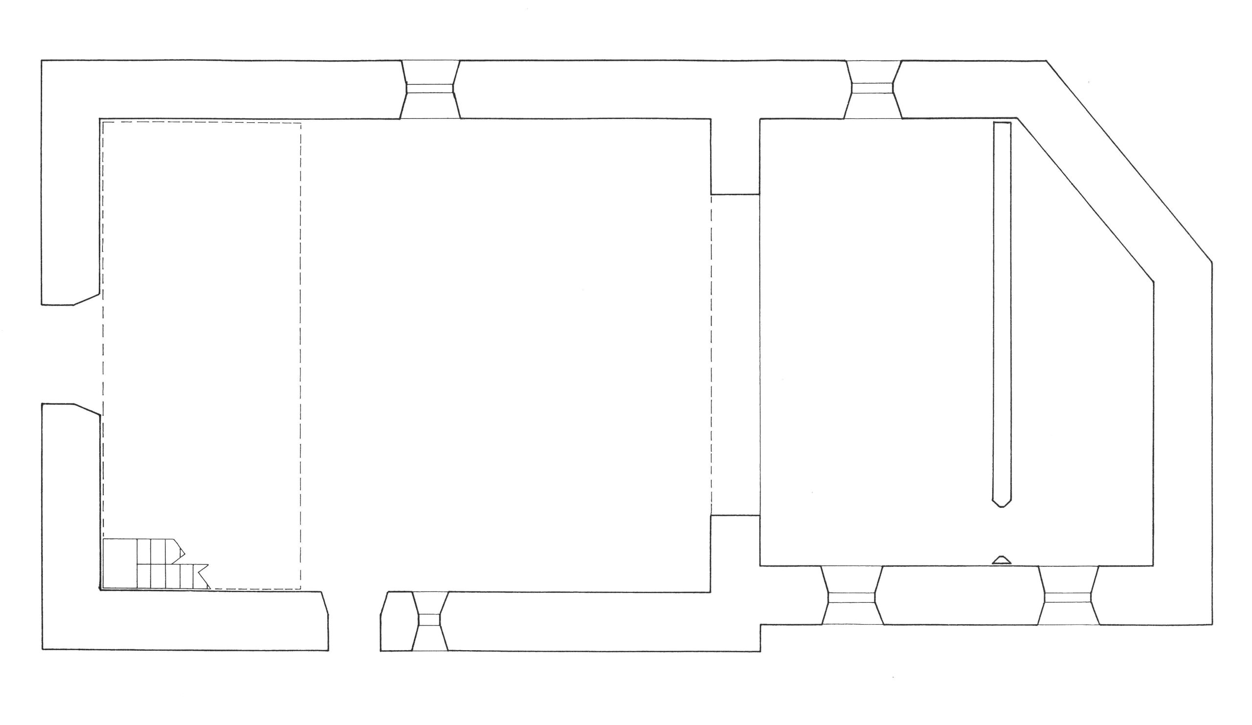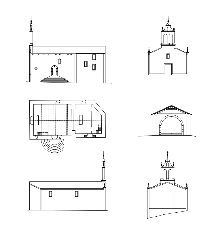 Planta de la iglesia.(José Antonio Franco Taboada, Santiago Tarrío Carrodeguas (dirs.), A arquitectura do Camiño de Santiago: descrición gráfica do Camiño Francés en Galicia, Santiago [de Compostela], Xunta de Galicia, A Coruña, Universidade da Coruña, D.L. 2000). |