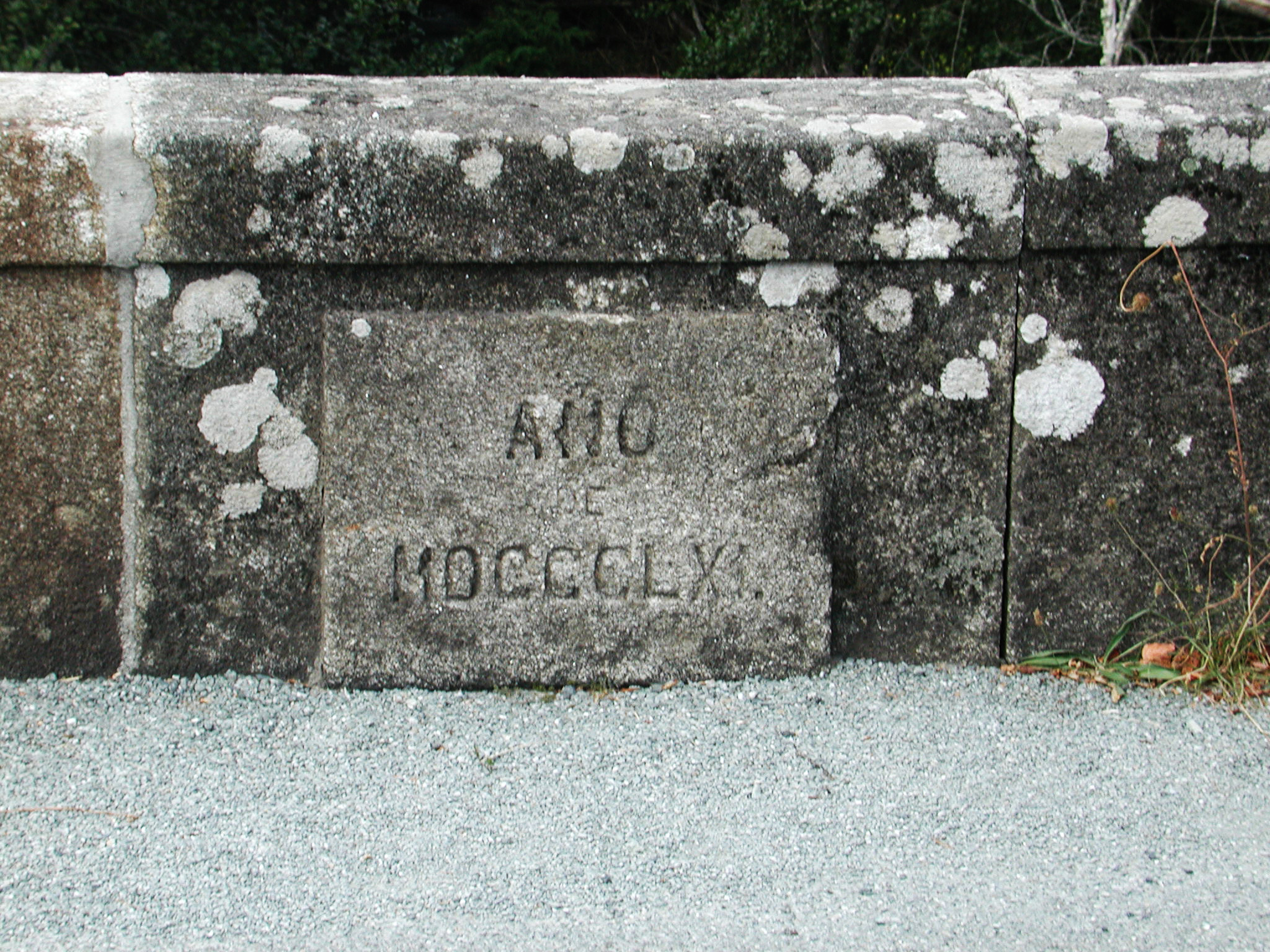 En medio del puente se encuentran dos sillares colocados uno enfrente del otro para ser vistos desde la calzada, que tienen sendas inscripciones en las que consta que se construyó durante el reinado de Isabel II en el año 1851.