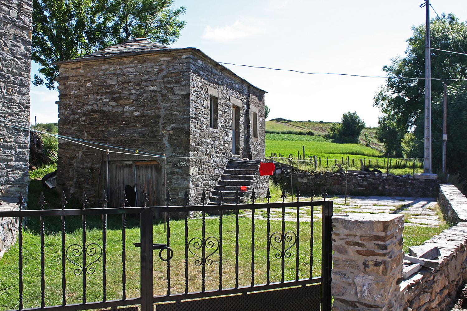 La práctica totalidad de las casas son viviendas de labradores construidas al modo tradicional con paredes de mampostería y cubiertas de pizarra. Estas viviendas solían disponer de diversas construcciones auxiliares como son los hornos de uso familiar, las cuadras, los alpendres y también los cilleros, donde se guardaba principalmente el centeno y el trigo; algunas casas conservan todavía las eras de mallar el grano. Recientemente se han reconstruido algunas de estas edificaciones con ladrillo, cemento y aluminio, que sustituye a la carpintería de madera. Además se han abierto tiendas y restaurantes para atender a los nuevos peregrinos y viajeros que pasan por el lugar.