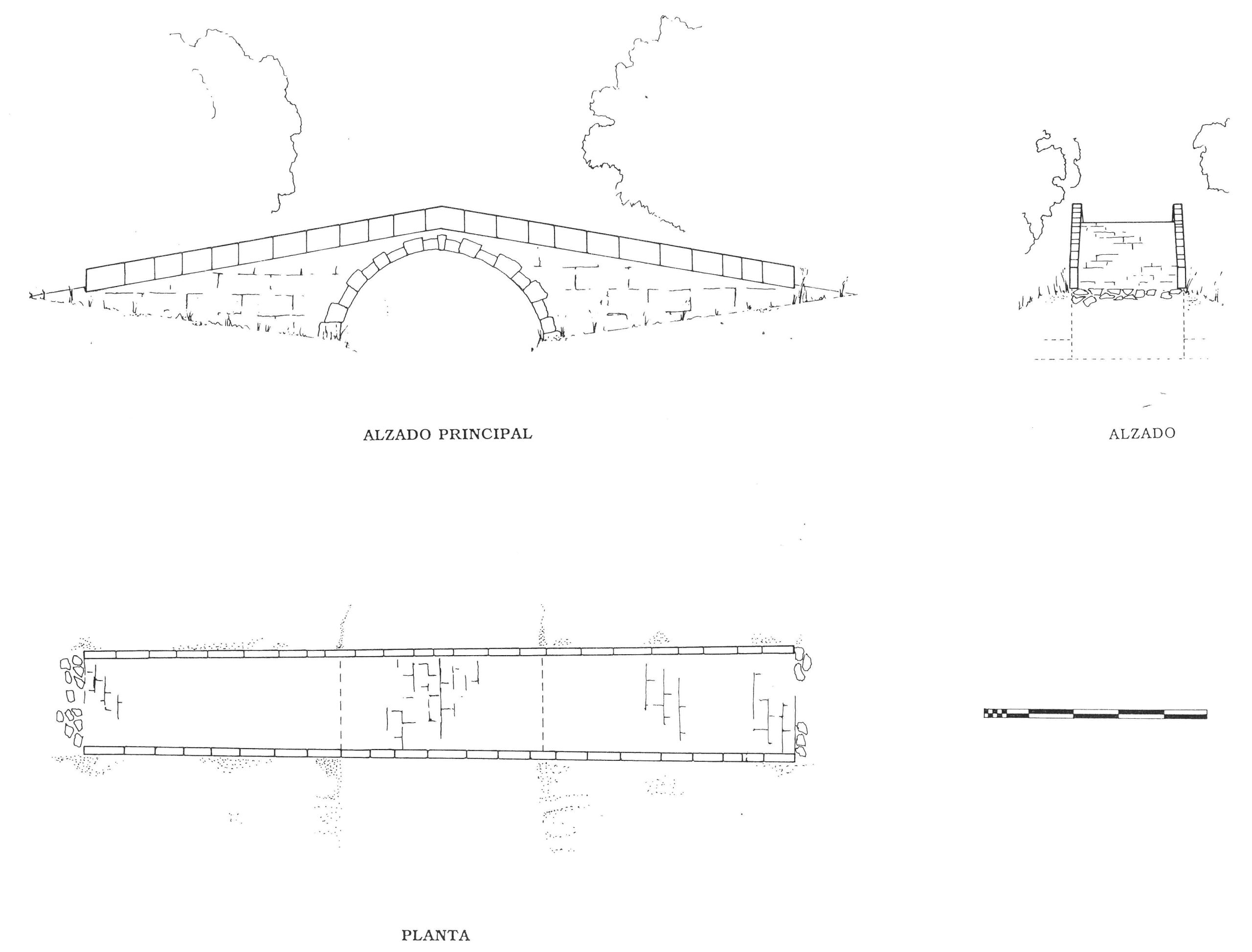 Planta y alzados del puente.(José Antonio Franco Taboada, Santiago Tarrío Carrodeguas (dirs.), A arquitectura do Camiño de Santiago: descrición gráfica do Camiño Francés en Galicia, Santiago [de Compostela], Xunta de Galicia, A Coruña, Universidade da Coruña, D.L. 2000). |