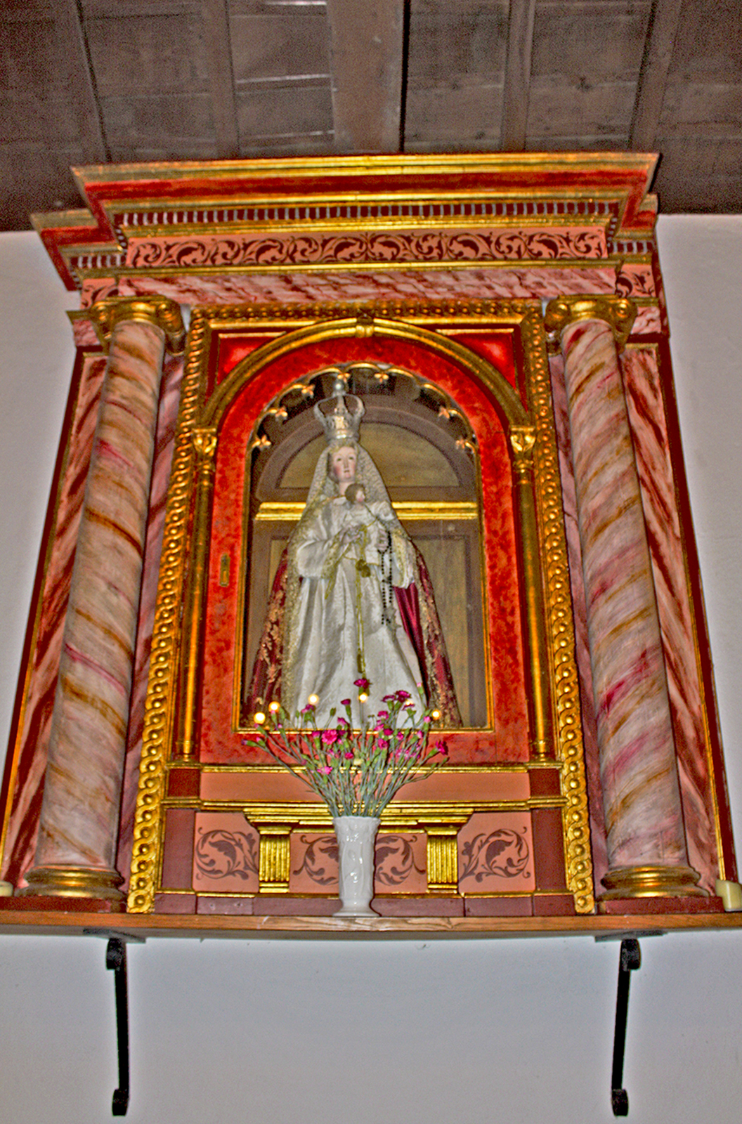 En el muro contrario, el de la Epístola, podemos encontrar el retablo dedicado a Virgen del Rosario. De factura similar al anterior en cuanto a paleta tonal, decoración y uso de la policromía, se trata de un retablo con una única calle con una hornacina enmarcada en una moldura dorada idéntica a la descrita en el lado opuesto, en cuyo interior se ubica la virgen.