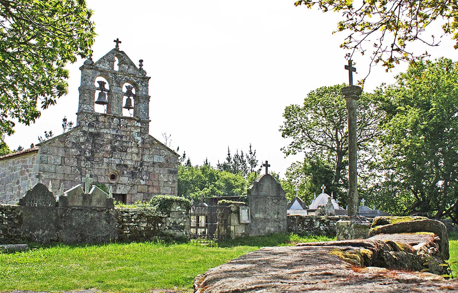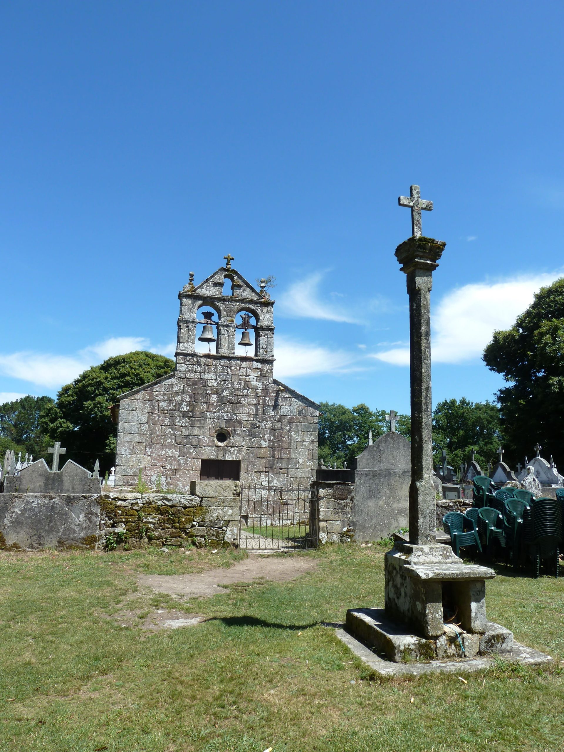 Iglesia parroquial del Camino Francés, ubicada a la salida de la población de Lestedo en dirección a Compostela, en el municipio de Palas de Rei, provincia de Lugo. Entre los lugares de Portos, al este y Os Valos, al oeste. Se trata de un templo de una única nave rectangular a la que se han adosado dos volúmenes posteriores: el primero mantiene la altura de dicha nave; sin embargo, el segundo presenta una altura menor, siendo esta la sacristía que da servicio al templo, con un acceso propio en el muro sur.