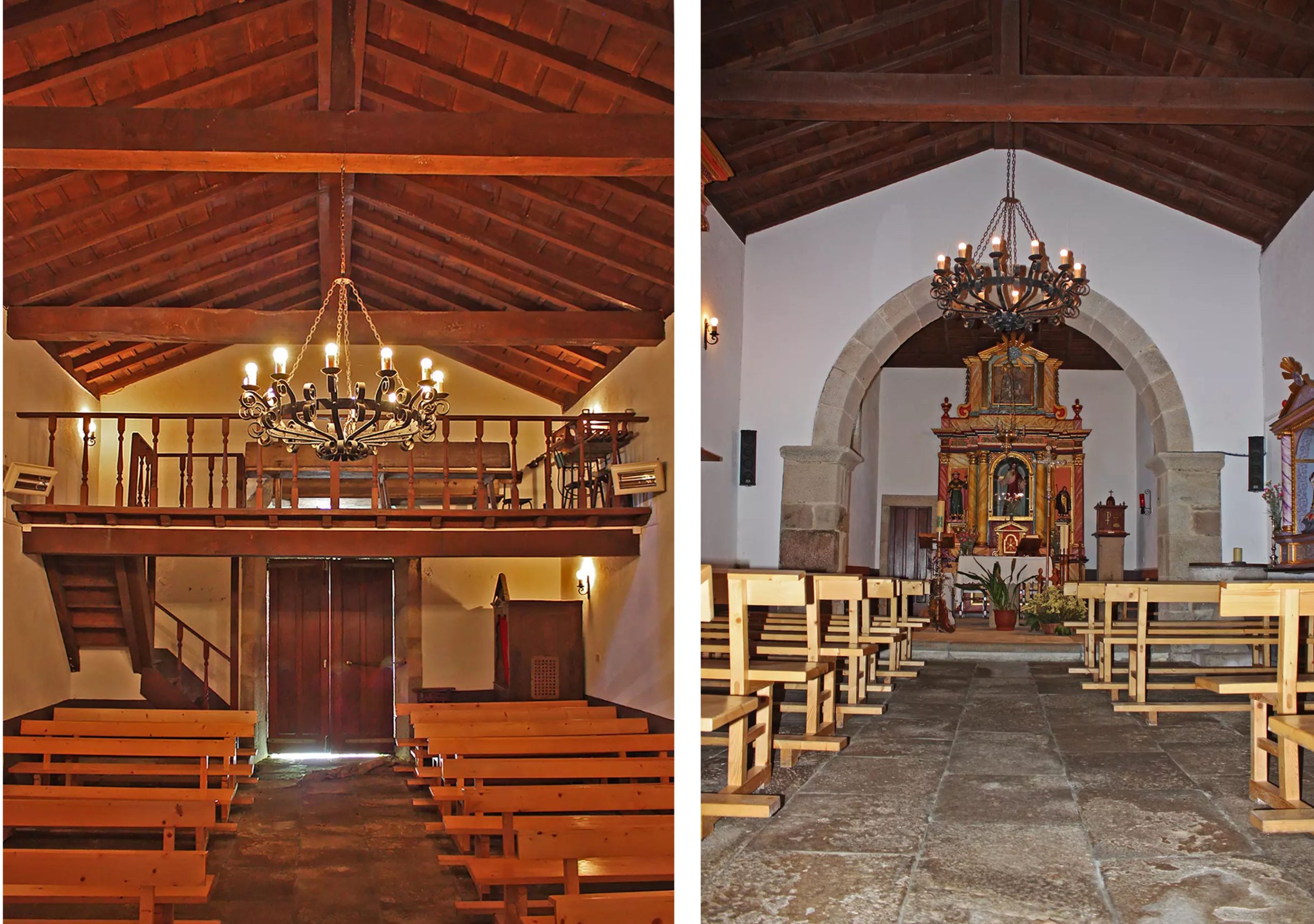 | Pies de la nave de la iglesia de Santiago de Lestedo. Nave y ábside de la iglesia de Santiago de Lestedo. |