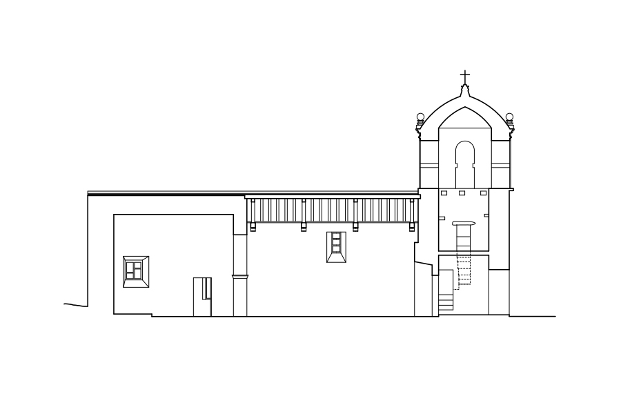| Exterior de la iglesia: muro perimetral y estructura. |