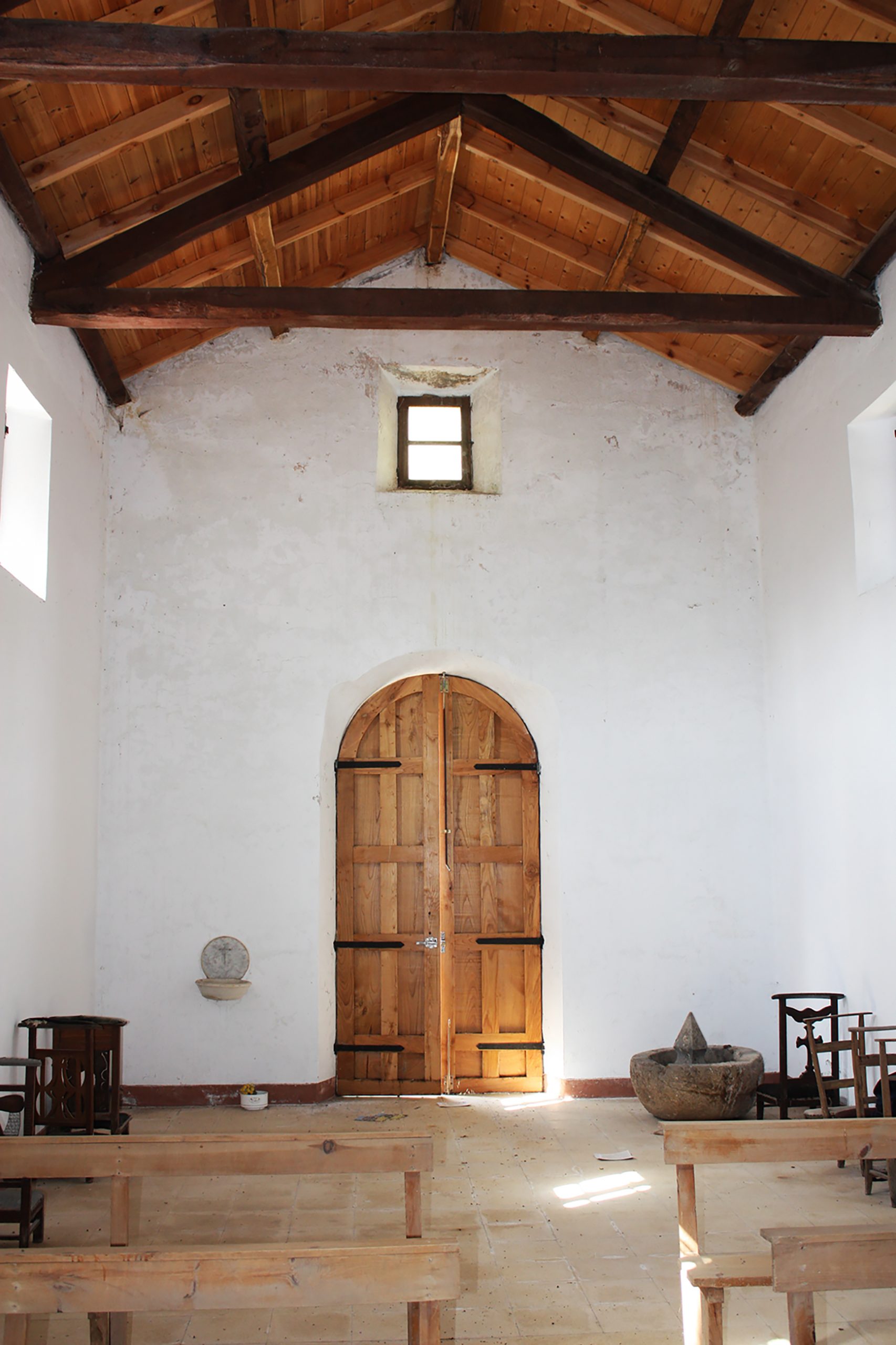 La nave se comunica con la cabecera por medio de un arco triunfal de medio punto, que arranca de dos impostas que se prolongan a lo ancho del muro. El cuerpo de la cabecera es de planta cuadrangular y presenta una bóveda apuntada que arranca de una cornisa que recorre el perímetro interior del presbiterio.