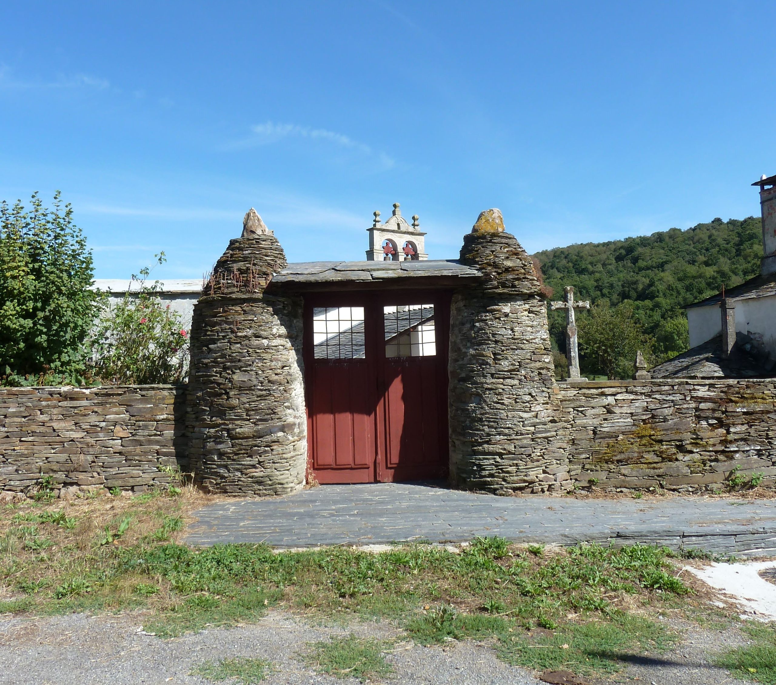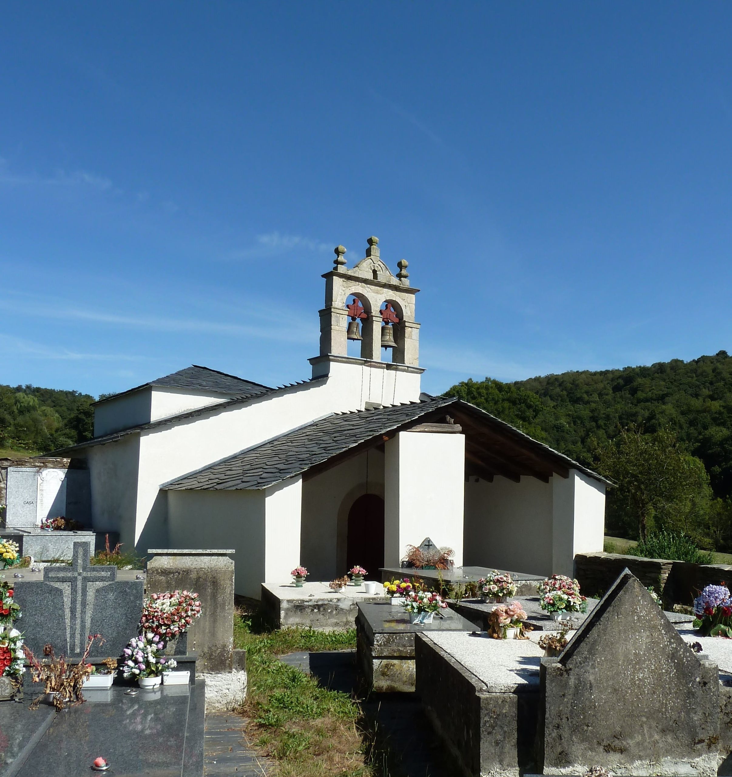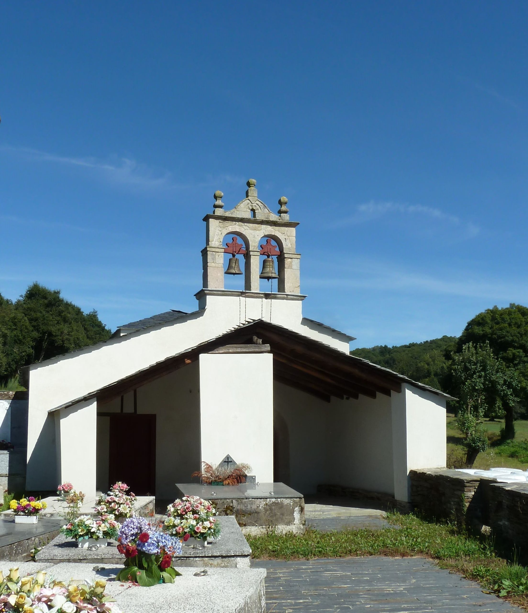 El templo está ubicado en una parcela donde se ubica el atrio, además de compartir espacio con el cementerio parroquial. La parcela está cercada por un muro de piedra con un acceso marcado por dos torres cilíndricas de piedra de esquisto que sirven de anclaje para las dos verjas que lo cierran.