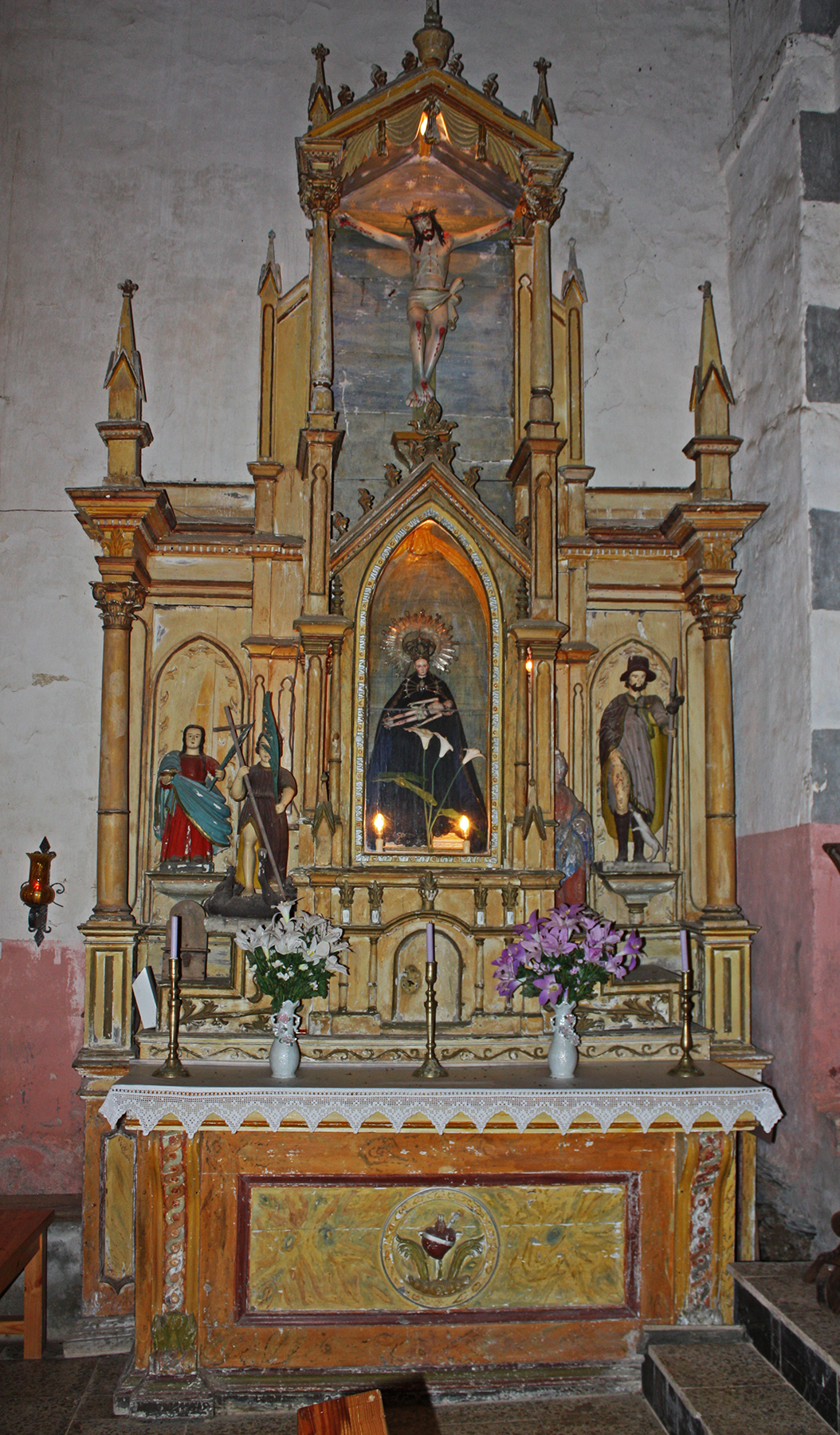 Además del retablo mayor, la iglesia cuenta con un segundo ubicado en el muro de la Epístola. Se trata de un conjunto de reciente factura y estilo neogótico, cuyos elementos hacen que se extienda en la vertical a pesar de contar con un único piso y el ático. Se trata de los pináculos apuntados que enmarcan el retablo, así como de las entrecalles que rematados en el mismo elemento se estilizan hasta el extremo. Este retablo acoge muy diversas imágenes entre las que destacan el Cristo del ático, la Piedad procesional que sostiene entre los brazos la figura de su hijo muerto muy desproporcionada por su exiguo tamaño, la talla de madera policromada colocada en el mismo retablo que representa a una santa coronada y ricamente vestida, de pie y con un libro en una mano y que, según Delgado Gómez, es Santa Catalina.