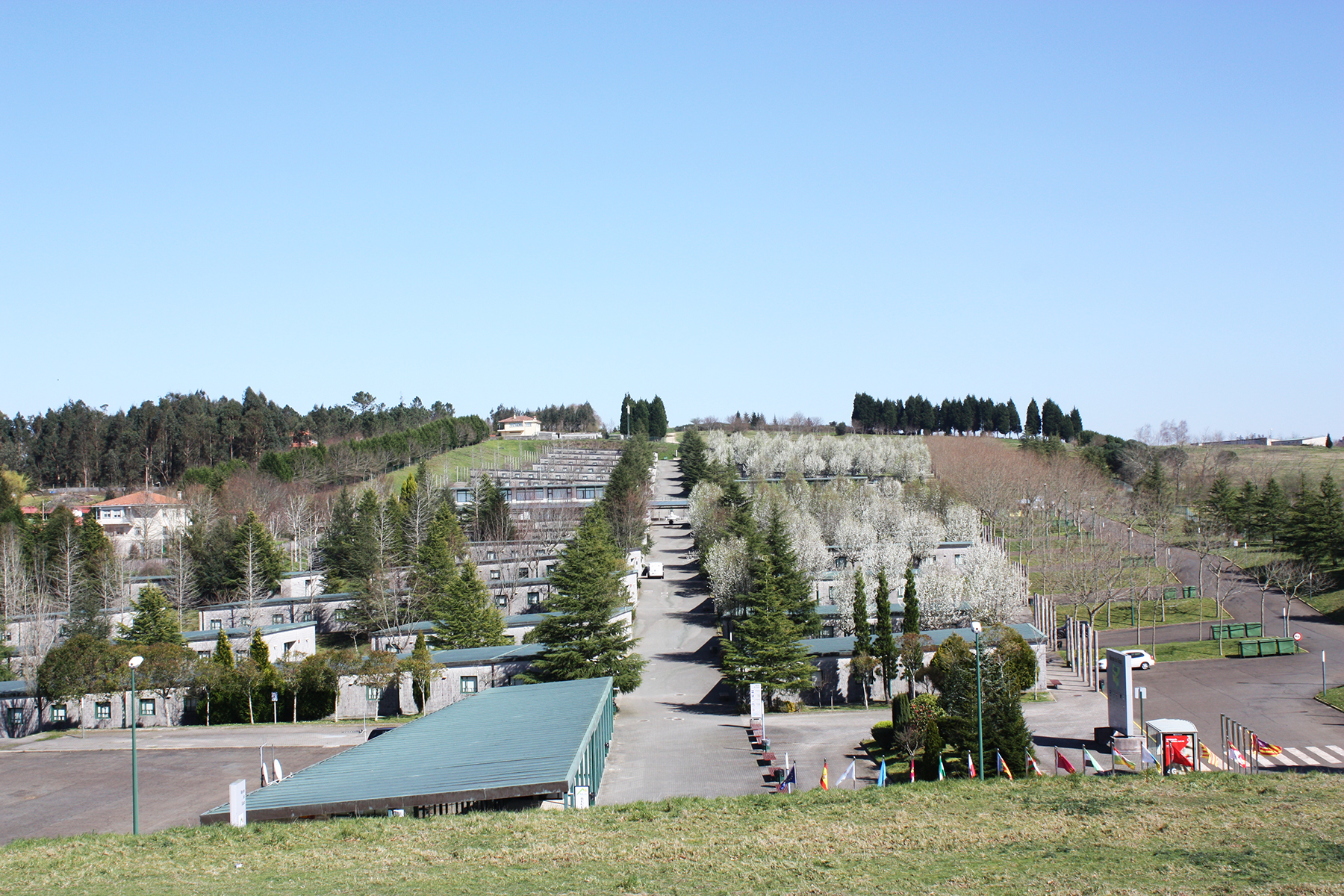 La primera de las parcelas construidas, ubicada en el extremo oriental del complejo, reúne las instalaciones de un camping, que fue proyectado por Celestino García. Próximo al camping se levanta Centro Europeo de Peregrinación y Pastoral Juvenil, que se debe al arquitecto Iago Seara Morales; este centro tiene integrada en su recinto una pequeña capilla anexa que recibe el nombre de Santa María del Camino.