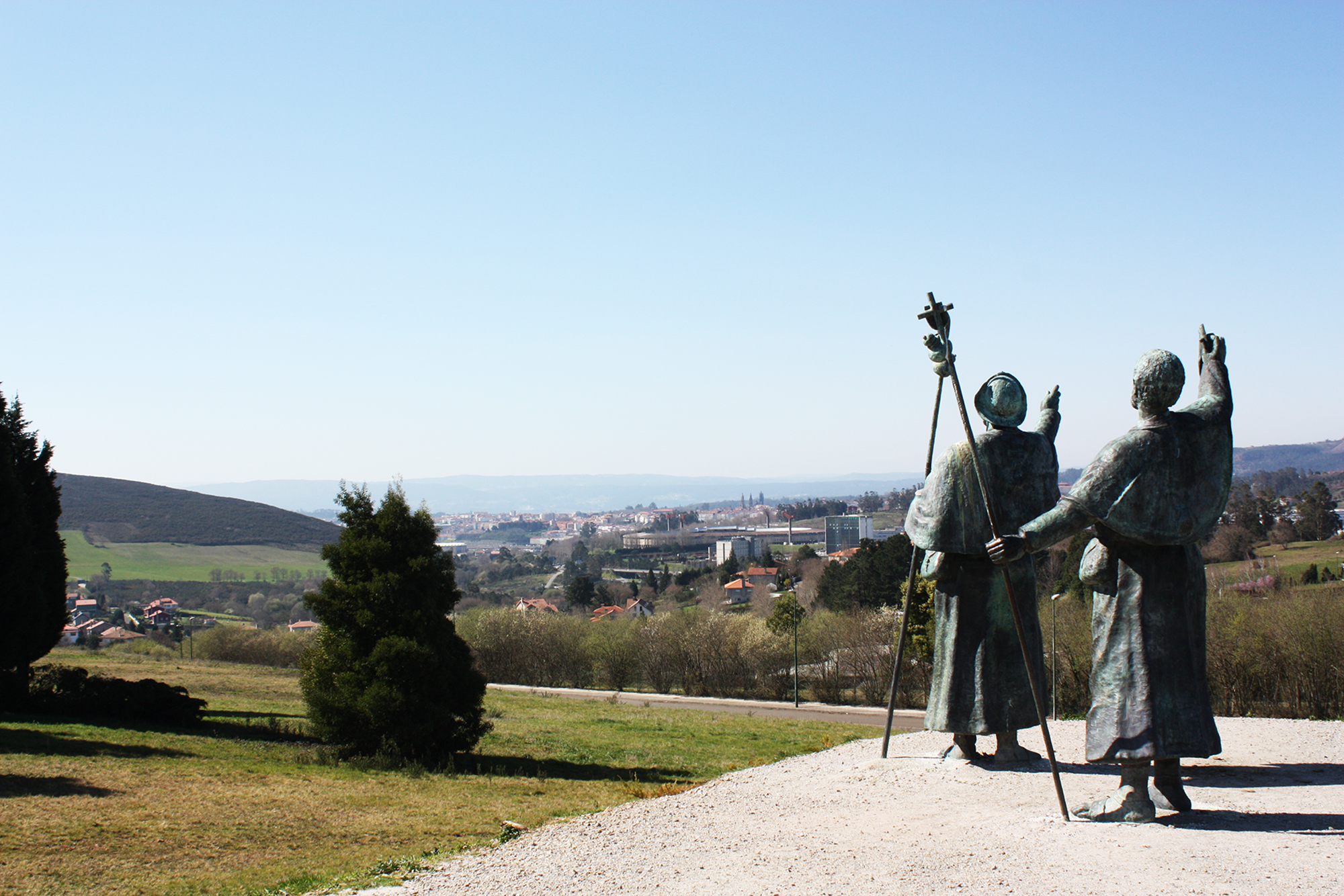 | Vista de la ciudad de Compostela desde un alto en el complejo do Monte do Gozo. |