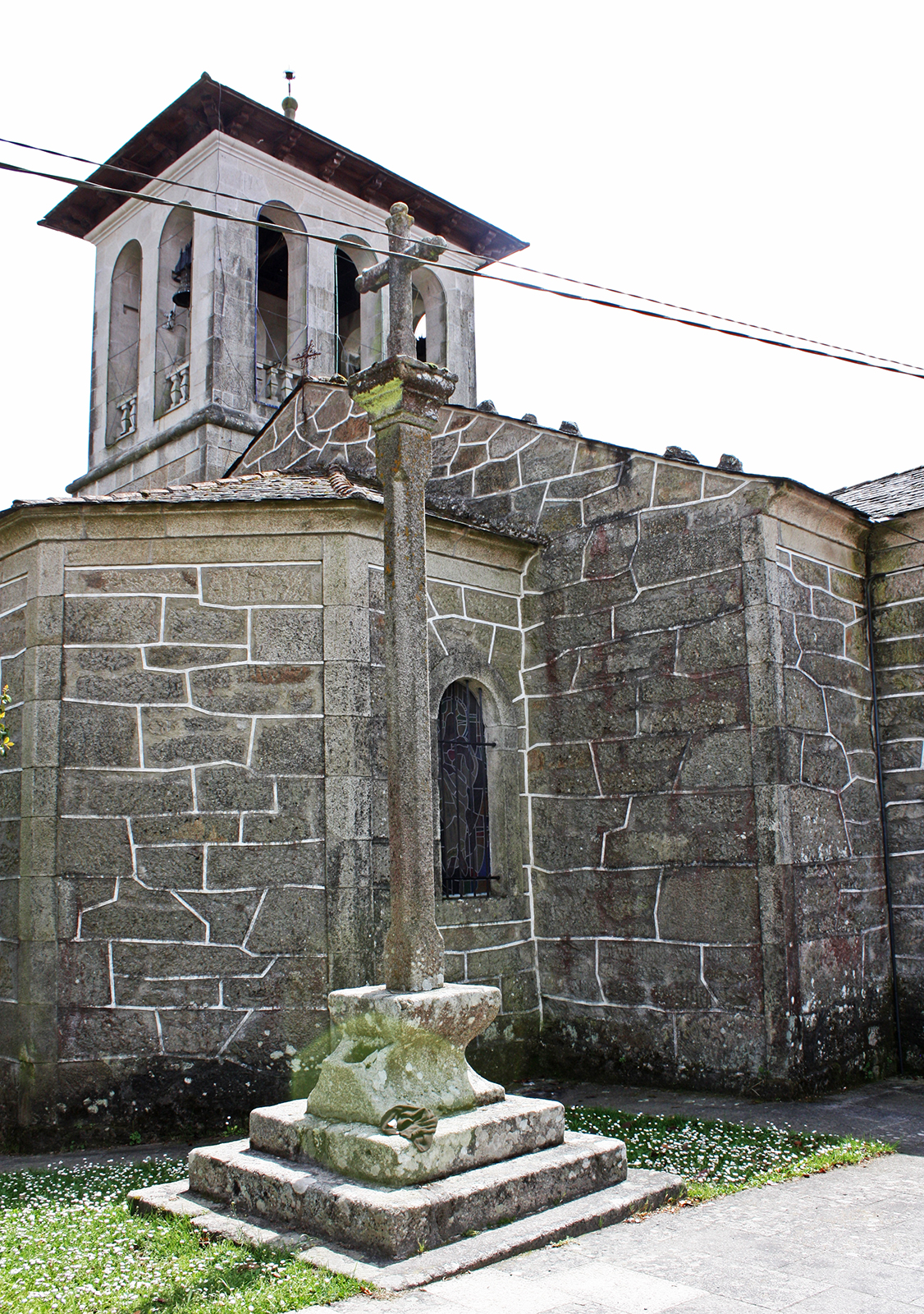 Junto a la iglesia, en los pies de esta, está ubicado el cruceiro. Este se yergue sobre una una triple plataforma y una basa alta que sostiene el fuste de planta cuadrada encargado de recibir el capitel moldurado y la cruz latina que lo corona.
