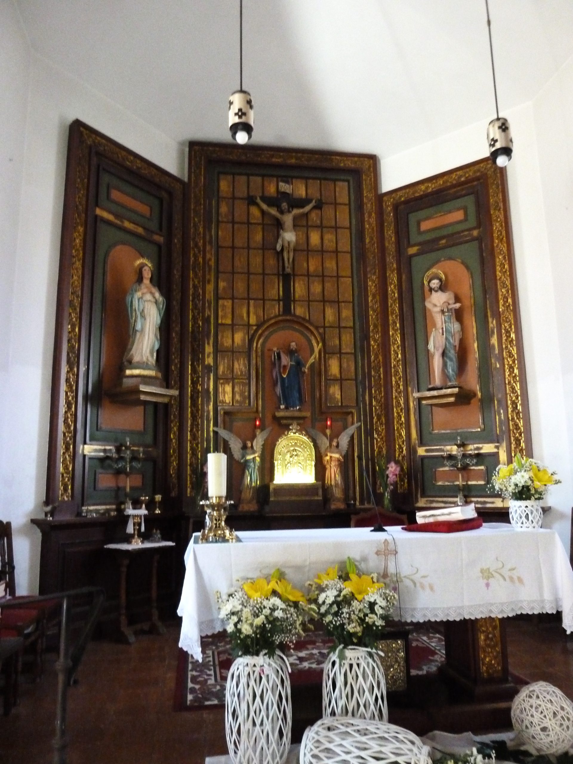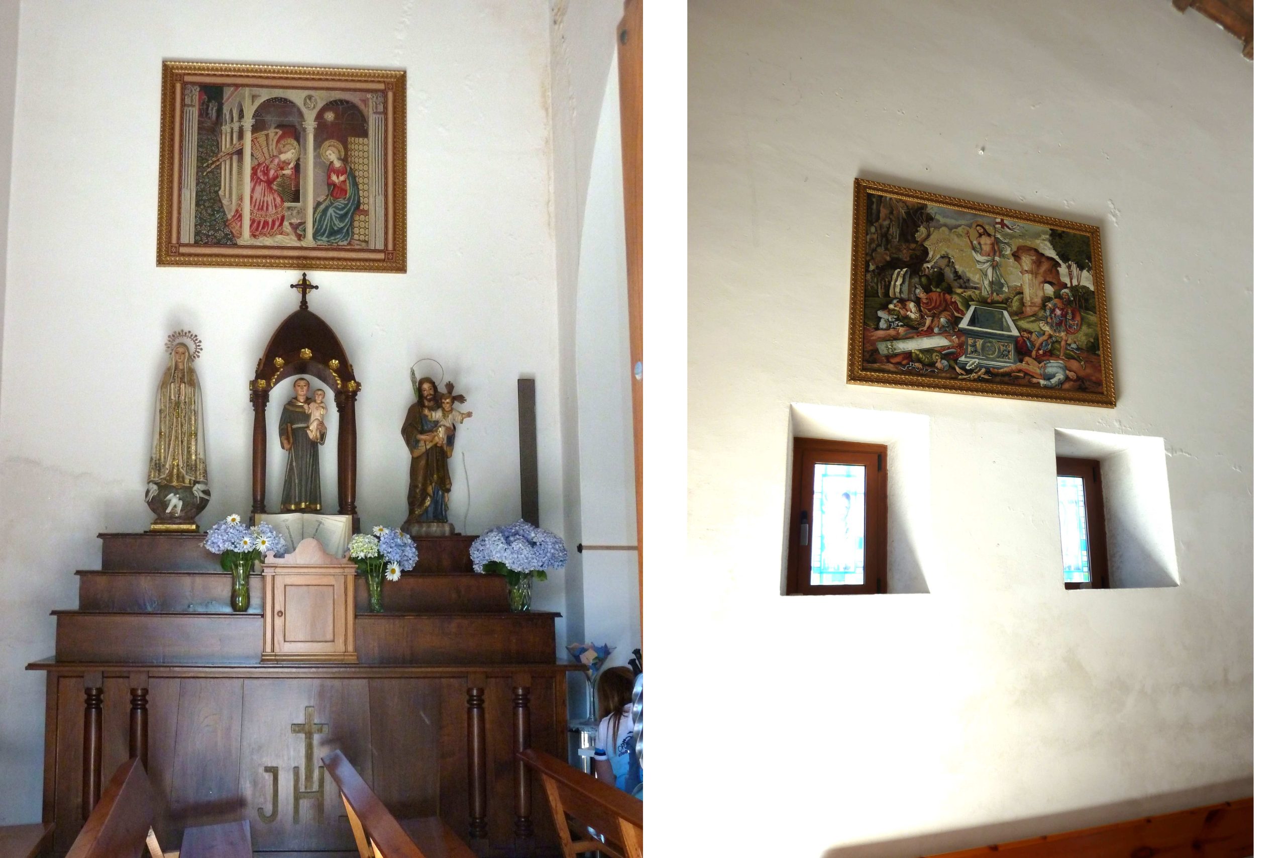 En la capilla lateral se ubican dos tablas pintadas correspondientes a la Resurrección de Jesús y a la Anunciación. Además, el espacio cuenta con un retablo escalonado en cuyo último nivel se ubican las esculturas de San Antonio, bajo un templete, San José con el Niño y la Virgen de Fátima.