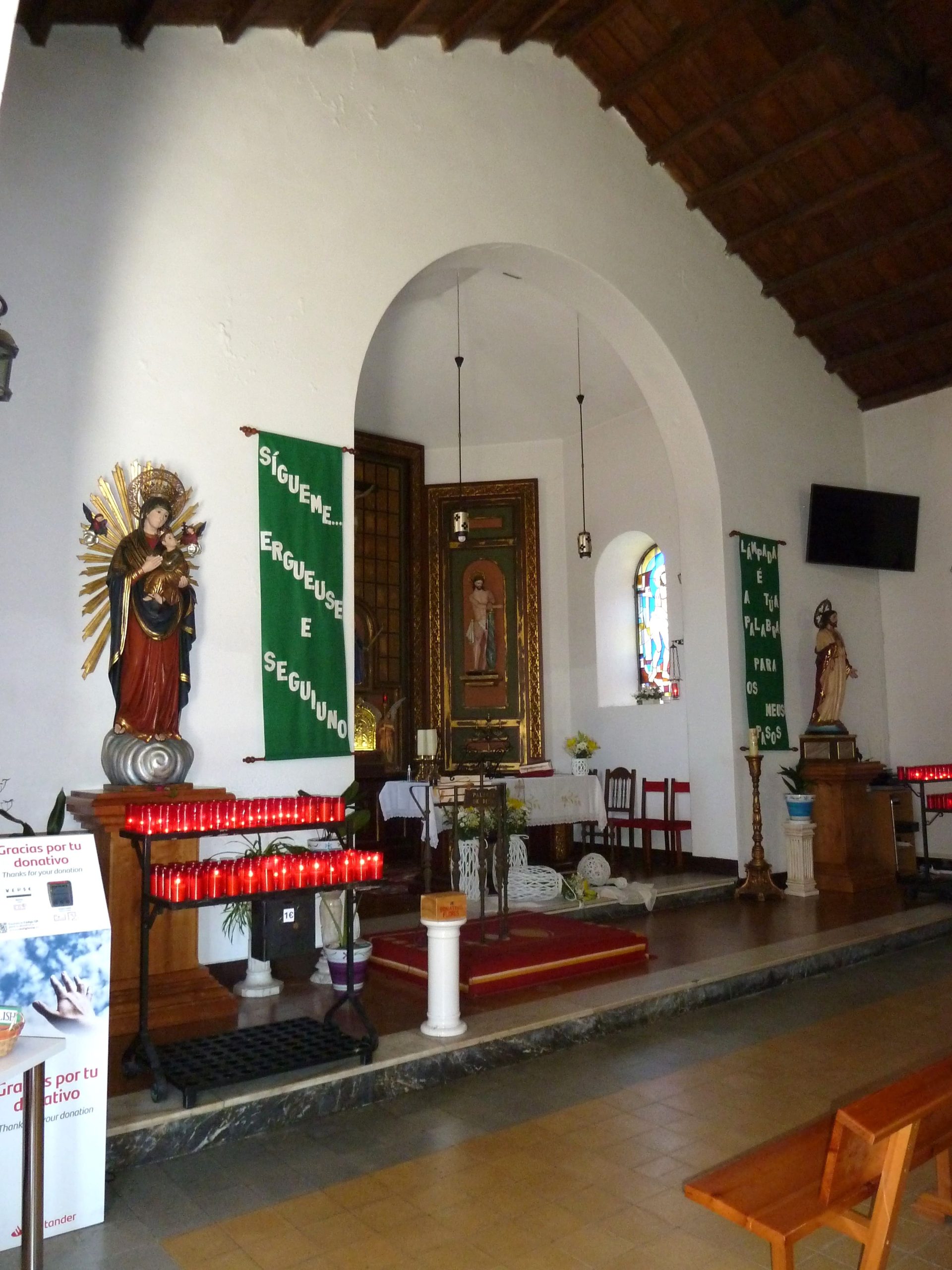 Custodiando el arco de medio punto que adelanta al ábside se ubican las esculturas de Nuestra Señora del Perpetuo Socorro en el lado del Evangelio y del Sagrado Corazón de Jesús en el opuesto.
