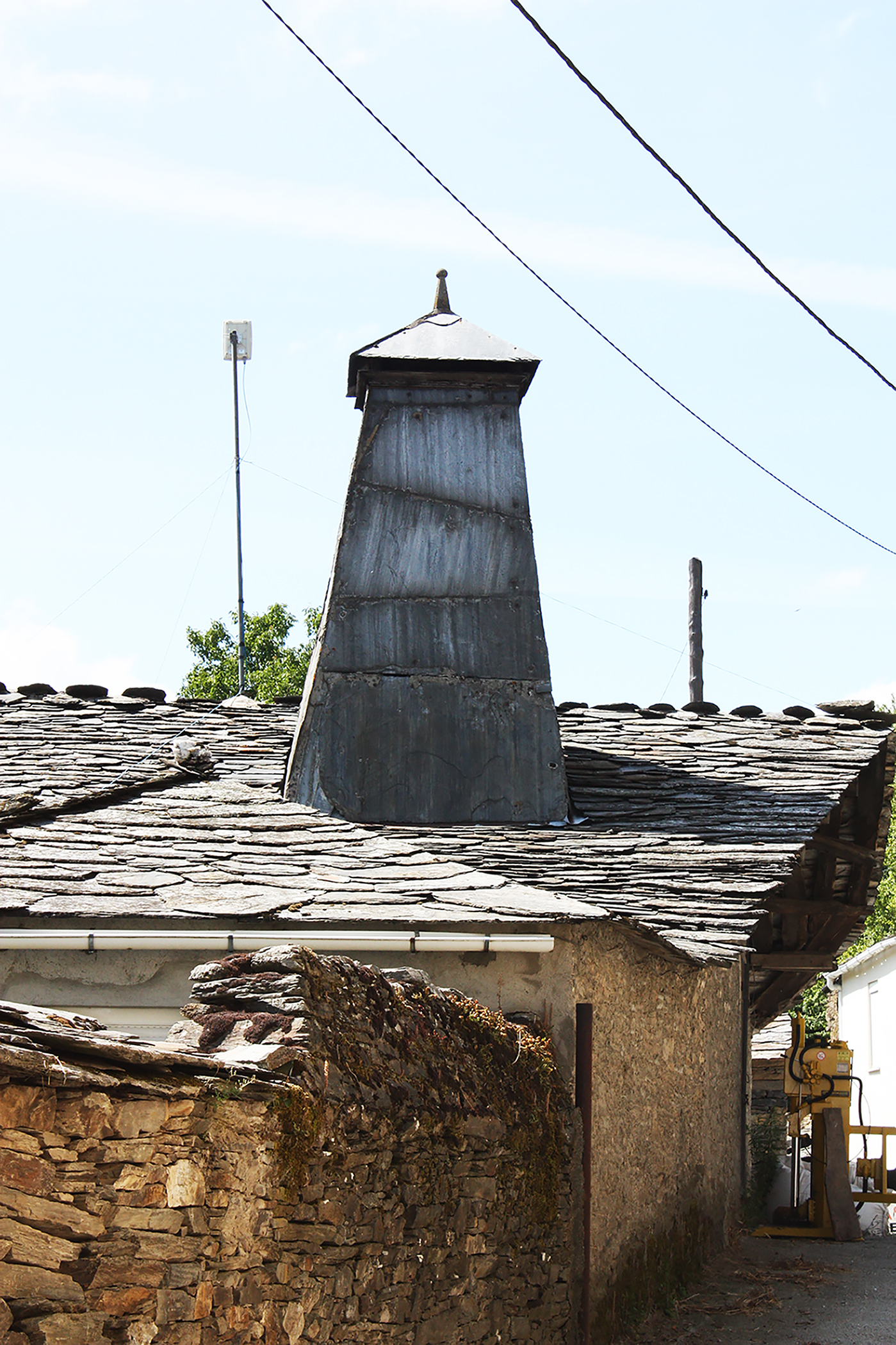 Los dueños de esta casa eran también los propietarios de un palomar que se encuentra en medio de una pradería ubicada al oeste de la población. El palomar es de planta circular con cubierta cónica de pizarra, que se apoya sobre un armazón de madera sostenido -a su vez- por una viga tirante; en el vértice de la cubierta se alza un pináculo de piedra caliza. El cuerpo de la edificación se eleva sobre un podio construido con sillarejos de esquisto que se dejaron a la vista. La puerta de entrada se abre al naciente; tiene jambas y dintel de madera.