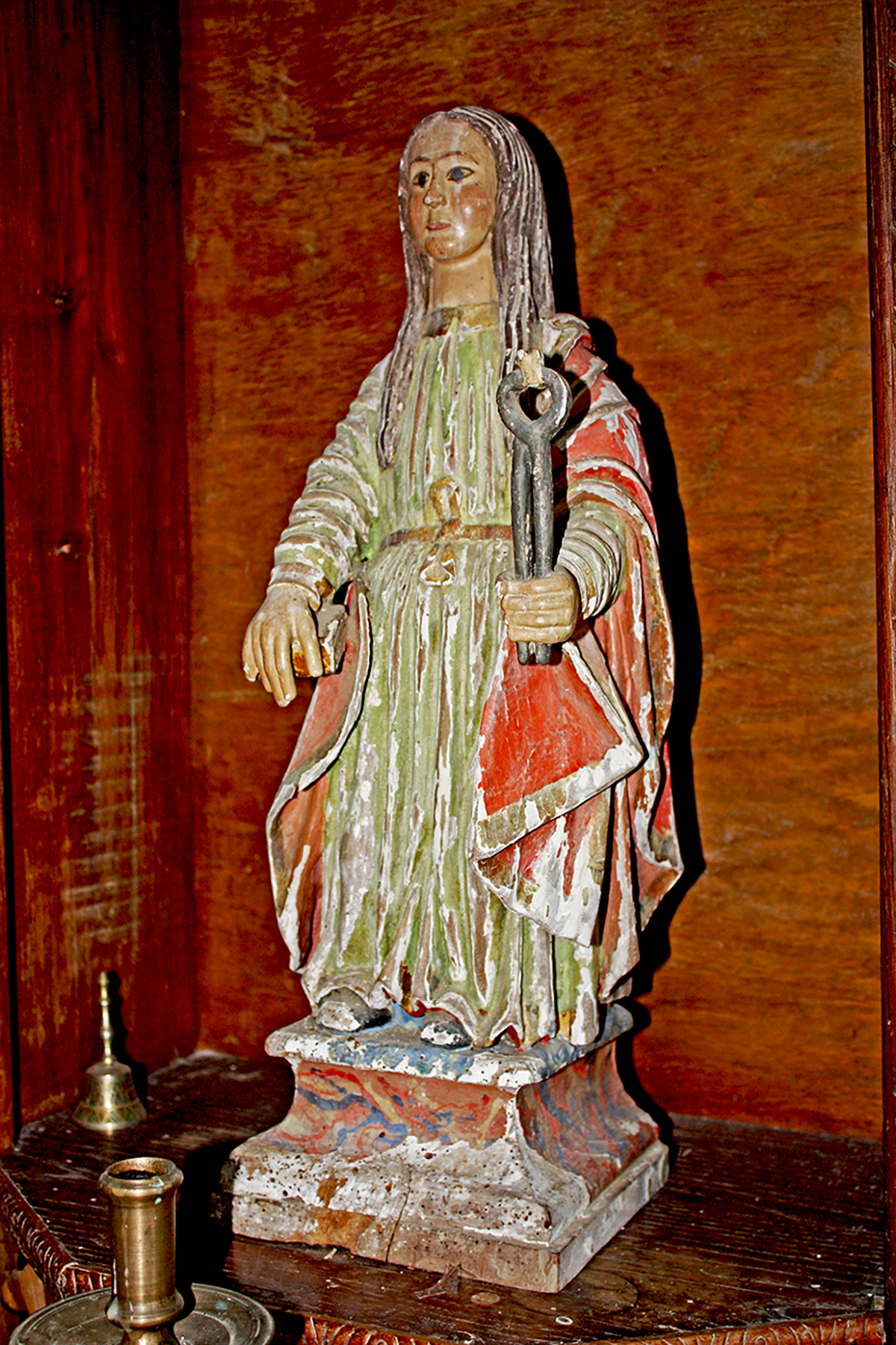 Los muros laterales se prolongan sobre la línea de fachada generando frente a esta un espacio techado de pequeñas dimensiones. En el muro sur se abre un vano en derrame interior para la iluminación del templo. El edificio se cubre con cubierta a tres aguas de pizarra.