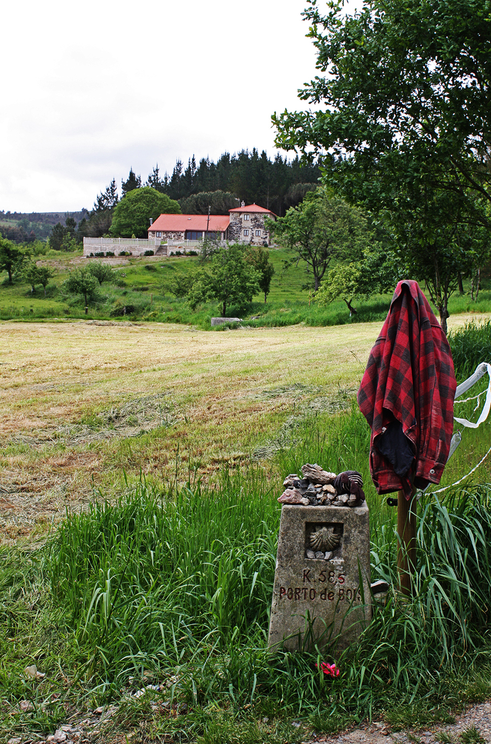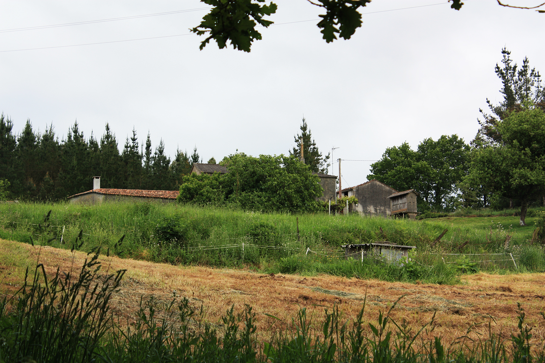 | El Camino a su paso por Porto de Bois. Al fondo la casa de los Varela. |