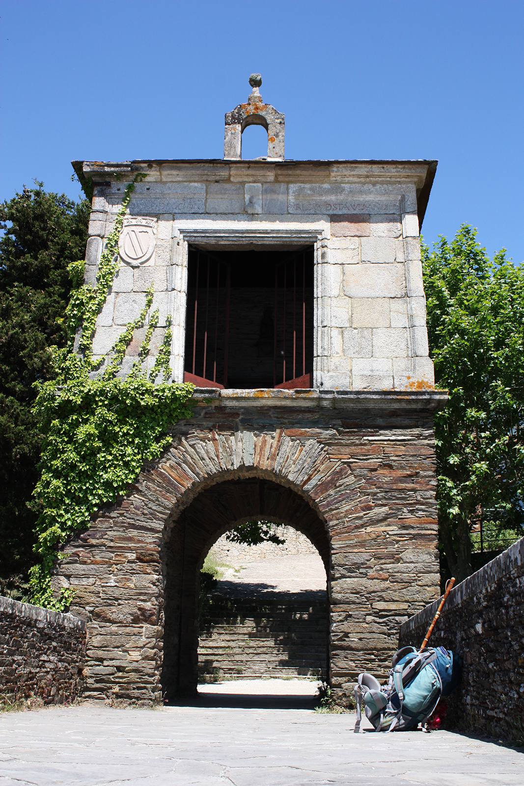 En la Edad Media el Camino Francés de Santiago de Compostela cruzaba el río Miño por un puente que se erigía entre los burgos de San Pedro y San Xoán de Portomarín (Lugo); el primero de estos burgos se ubicaba en la margen izquierda del río y el segundo en la margen derecha. El puente medieval era obra encastillada y así sabemos que se accedía al burgo de San Xoán por el lugar llamado O Paso, atravesando un arco de medio punto con limosnero de piedra, que se abría en la base de la torre que defendía la entrada del puente, donde se cobraba portazgo. Ya en la Edad Moderna el primer piso de esta torre fue ocupado por la capilla da Virxe das Neves, también llamada da Nosa Señora da Ponte.