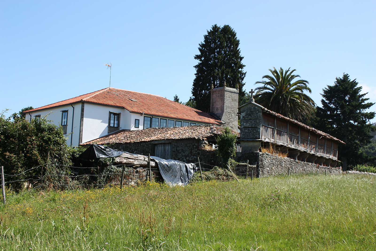 Sobre el muro que cierra la finca por el lado sur, se alza un hórreo que llama la atención por su mucha longitud; es de planta rectangular, con estructura pétrea que sostiene las paredes de tablazón que dejan correr el aire. El hórreo se apoya sobre nueve pedestales labrados en sillería de granito.