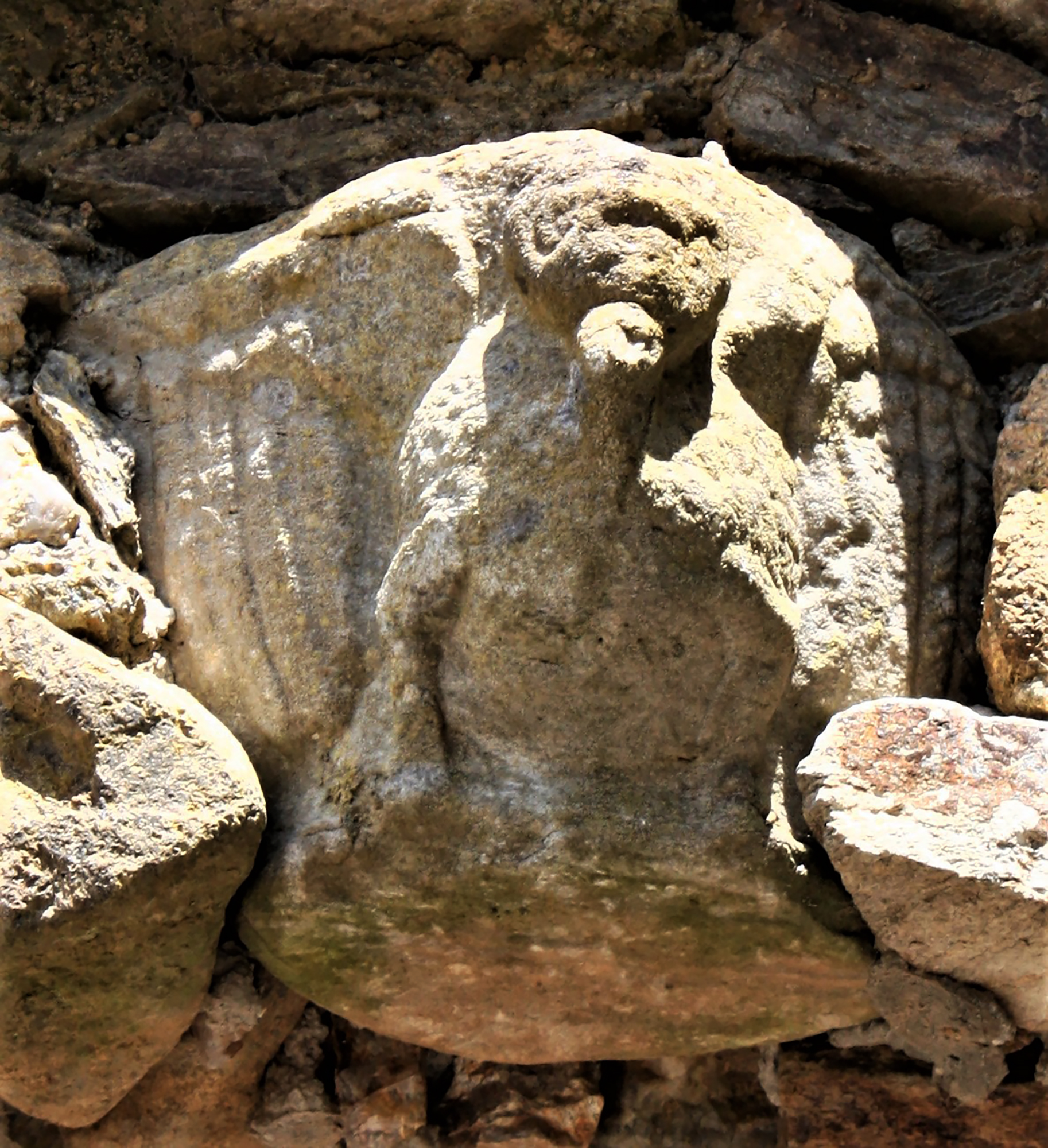 Capitel recolocado en la entrada de la antigua casa de postas del lugar da Rúa.