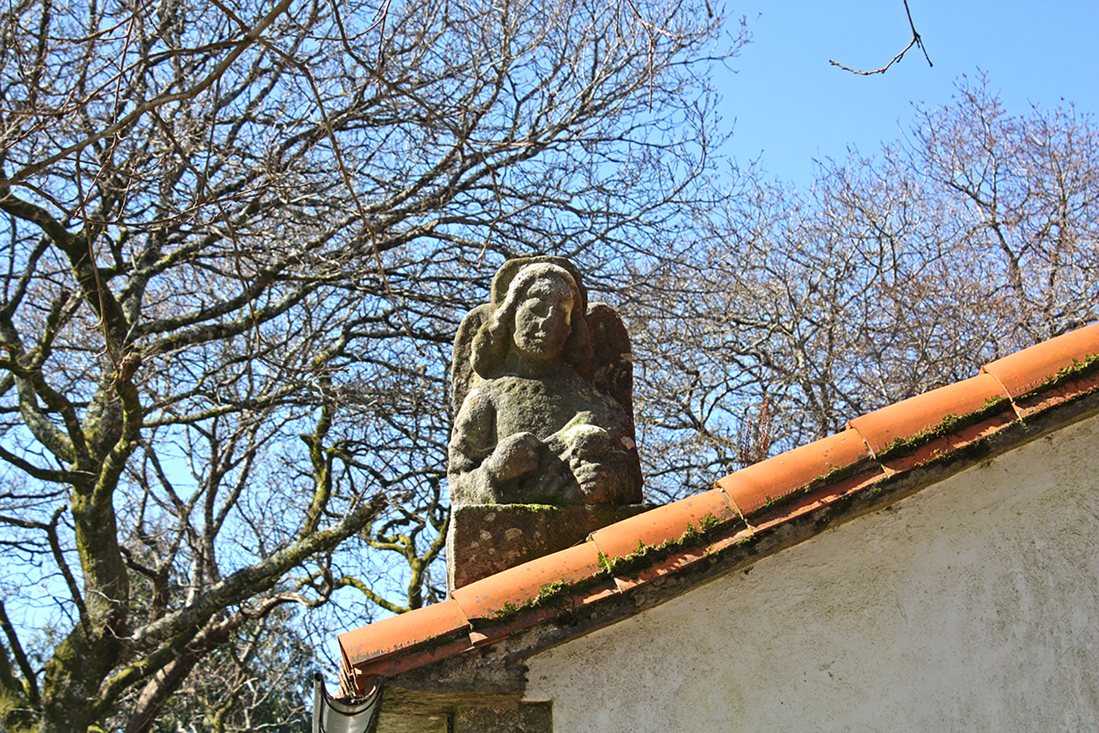 Busto de un ángel colocado en el alero de la capilla de San Marcos.