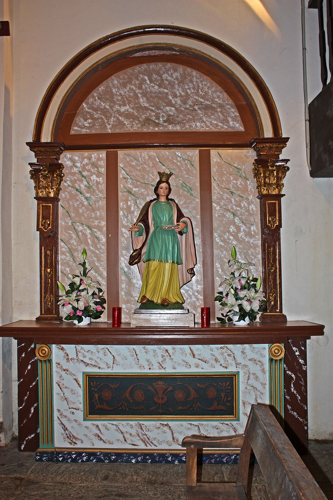 Ante el retablo mayor se encuentra una imagen de santa María Magdalena. En el muro sur del presbiterio pende un cristo crucificado. En el muro sur de la nave se encuentra colocado el retablo de santa Lucía, obra del ochocientos, de carácter y estilo eclético. Frente a este retablo, sobre una peana enclavada en el muro norte de la nave, se encuentra una imagen de la Virgen con el Niño en brazos y junto a ella -bajo la tribuna de la nave- hay una tabla pintada que representa a las ánimas en el purgatorio.