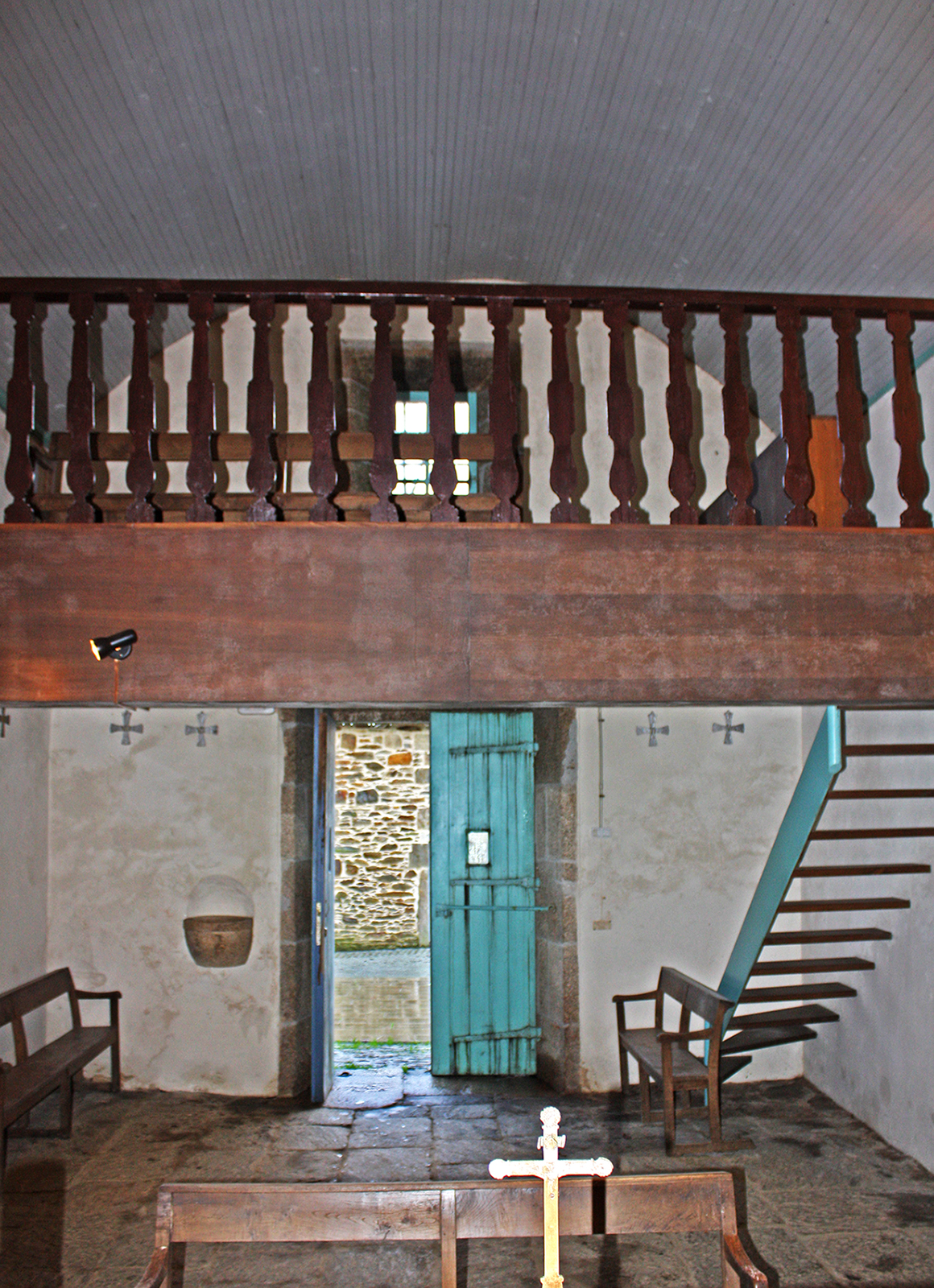 El conjunto consta de una sola nave de planta rectangular que se prolonga en el cuerpo cuadrangular del presbiterio; a los pies de la nave se levanta una tribuna de madera. El presbiterio está ligeramente sobre-elevado con respecto a la nave y es un poco más estrecho que ésta. Tras el retablo mayor se encuentra la sacristía. El interior del edificio se ilumina con una ventana que está colocada en el centro de la fachada principal y con otras cuatro ventanas más, que se abren pareadas en los muros laterales. Estas cuatro ventanas son estrechas y alargadas y presentan amplio derrame interior; en el testero de la sacristía hay otra ventana igual. La fachada principal, sumamente austera, se orienta hacia el oeste; en ella se abre una sencilla puerta adintelada, carente de ornato alguno. Corona la fachada una espadaña de granito, con doble arcada de medio punto sobre la que se eleva un frontón triangular con hueco en el centro, rematado por un pináculo tronco-cónico que, a su vez, sostiene una cruz de metal.