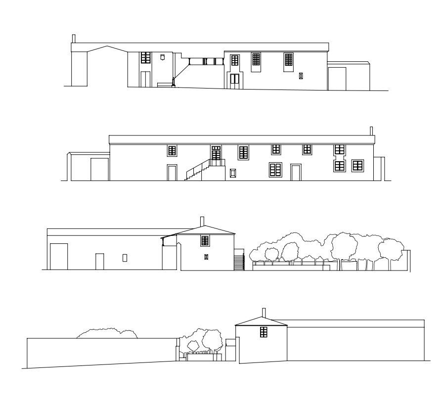 | Alzados del pazo.(José Antonio Franco Taboada, Santiago Tarrío Carrodeguas (dirs.), A arquitectura do Camiño de Santiago: descrición gráfica do Camiño Francés en Galicia, Santiago [de Compostela], Xunta de Galicia, A Coruña, Universidade da Coruña, D.L. 2000). |