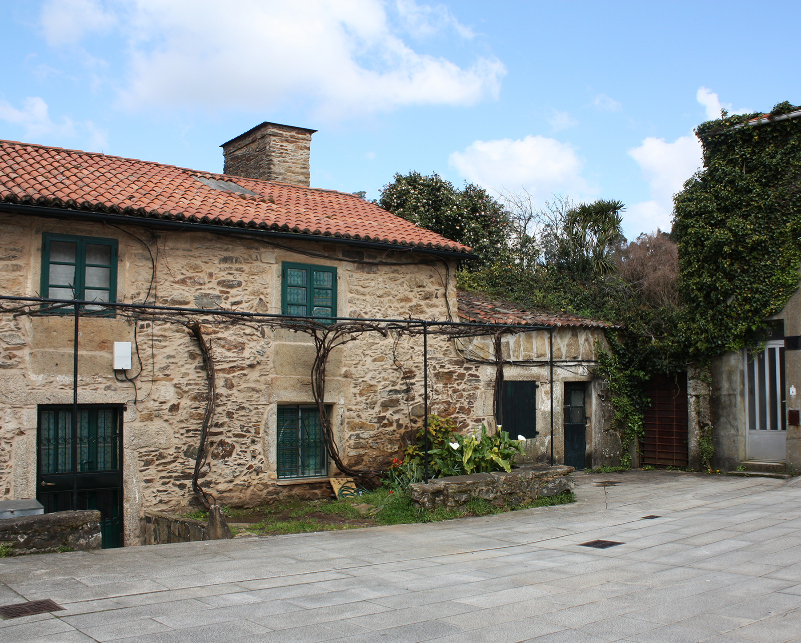 Todavía pueden verse en lugar algunas casas de construcción tradicional de planta baja y un piso alto, hechas con sillarejos de esquisto, carpinterías de madera y cubiertas de teja; las fachadas principales de estas casas miraban al antiguo camino, mientras que en la parte de atrás tenían huertas. Eran casas de labradores que podían disponer de algunas construcciones anexas, como hórreos o galpones.
