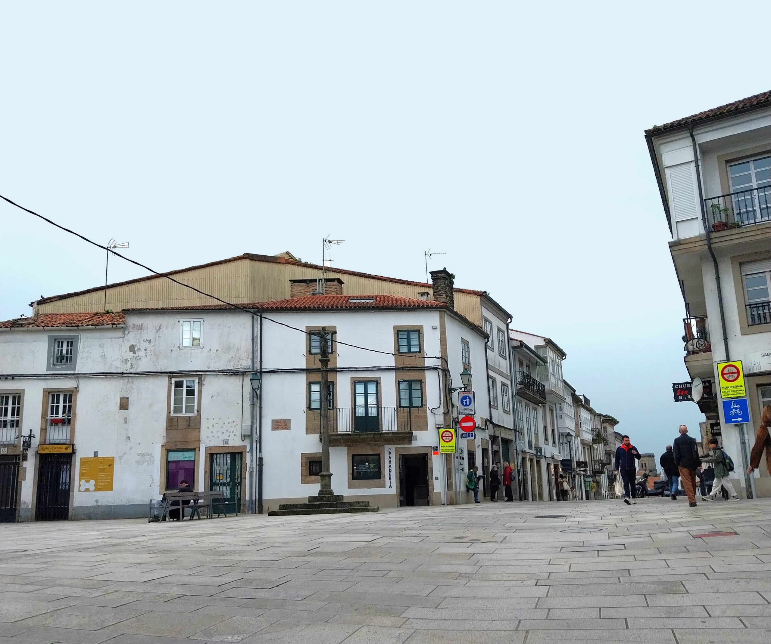 A mediados del siglo XVI las rúas de San Pedro y de Hortas (esta última en la salida hacia Fisterra) eran las dos calles principales de la ciudad por el tráfico de personas y mercancías; según varios testimonios de la época, ninguna de ellas estaba empedrada, por lo que “las dichas calles ban muy fondidas e las casas quedan muy altas e descobiertos los cimientos y en muchas partes ha menester para subir a ellas dos o tres grades y están muy peligrosas para se caer […]” y en el invierno el agua de la lluvia, traía “muchos lodos y fosas de tal manera que no pueden por ellas andar ni caminar a pie ni a caballos sino con trabaxo”, todo ello iba en detrimento de los vecinos, moradores “e peligrinos e romeros y caminantes”.