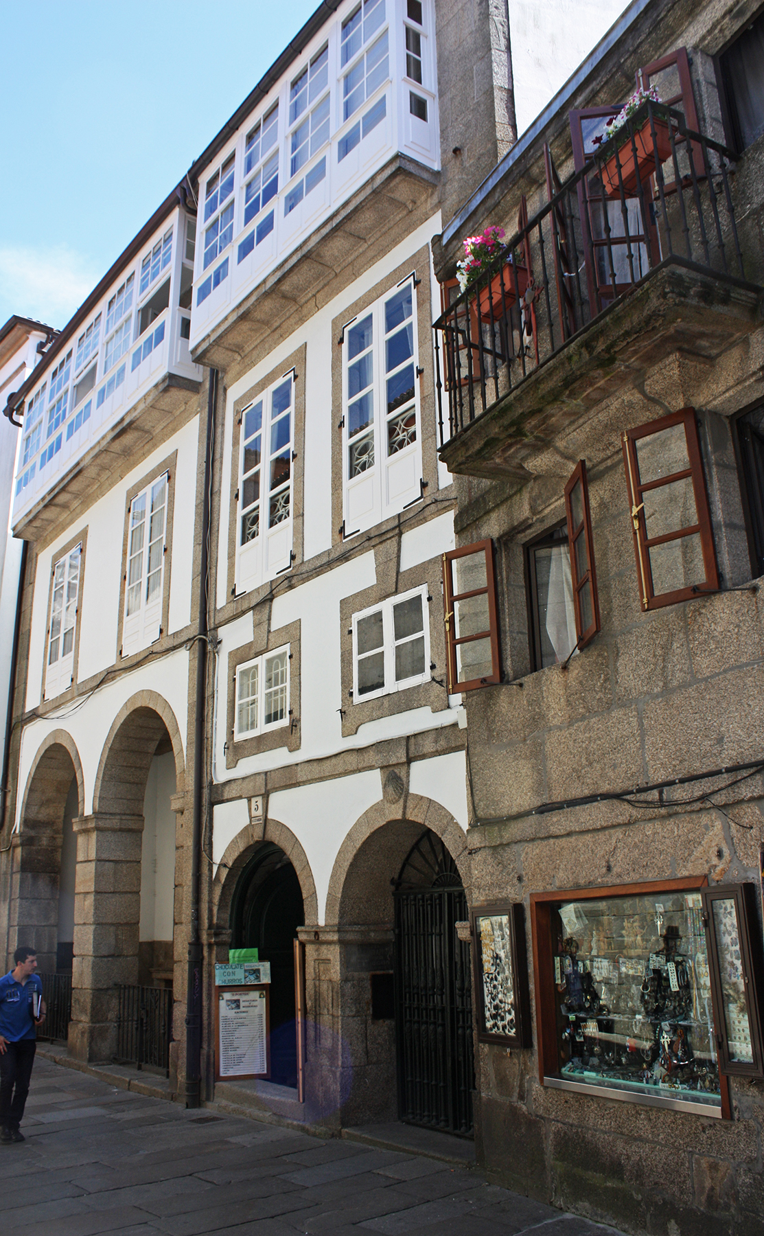 Ya en el siglo XIX, tras la desamortización, se construyeron, en ese mismo frente de la Rúa do Franco, dos casas que responden a una misma tipología. La casa de la izquierda tiene ocupada toda su fachada por dos grandes arcos, bajo uno de ellos hay una fuente de dos caños con la siguiente inscripción: “Se reedificó Año 1850”. La casa de la derecha cuenta con otros dos arcos más bajos, uno de entrada a la vivienda y, el otro, con venera en la clave y enrejado de hierro forjado, que deja ver en el interior la capilla do Apóstolo.
