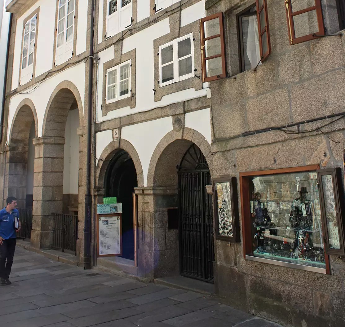 Muy cerca de la catedral, en los números 16 y 18 de la Rúa da Raíña en la ciudad de Santiago de Compostela, se levanta un caserón del siglo XVII que hoy en día ocupa el terreno de un antiguo hospital de peregrinos. A pesar de la nueva construcción, considerando la amplia tradición jacobea del lugar, mantuvieron la fuente y la capilla llamada do Apóstolo. Estas pertenecieron al hospital y se ubicaban en la parte trasera del solar, en la actual Rúa do Franco.