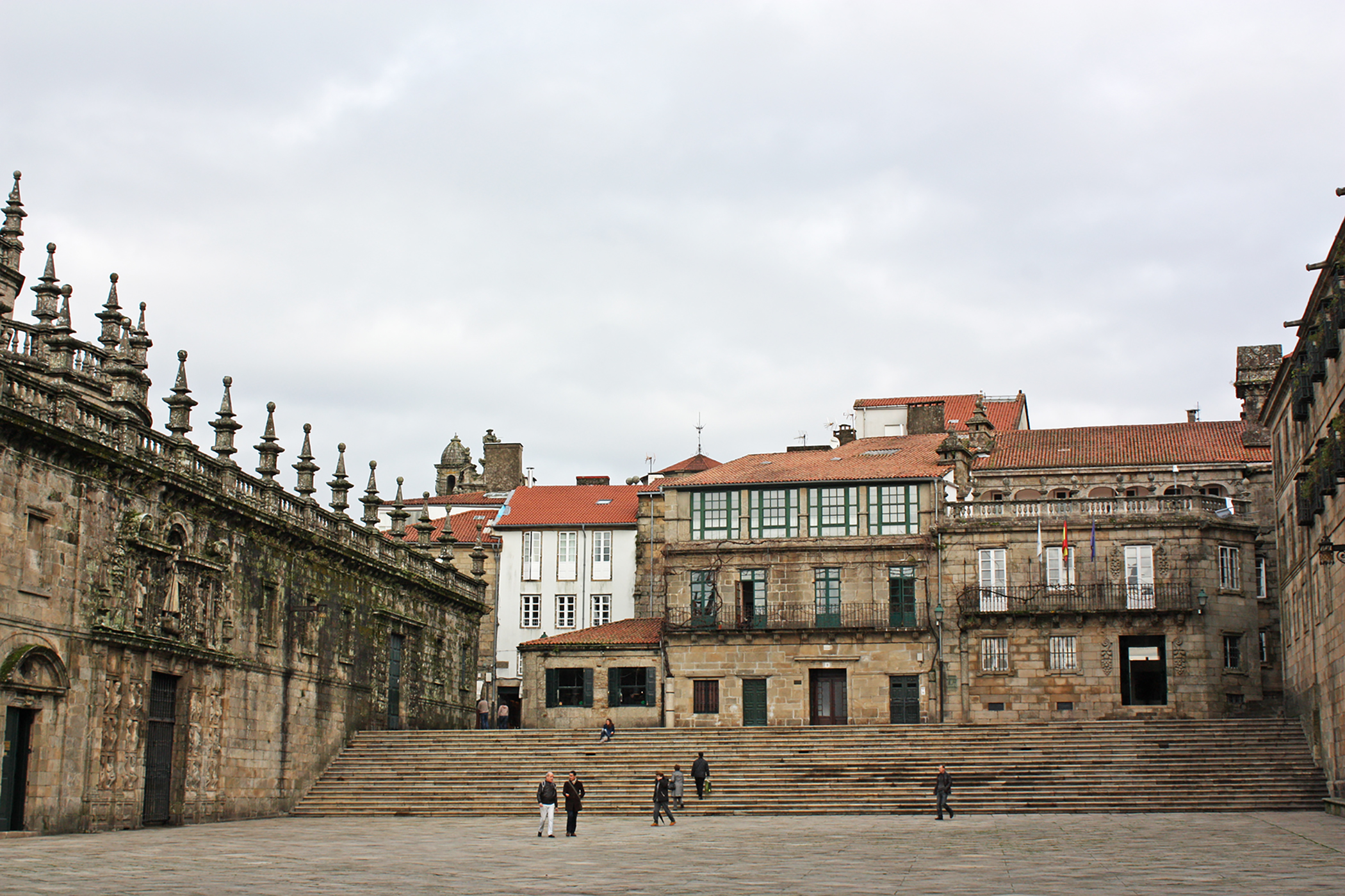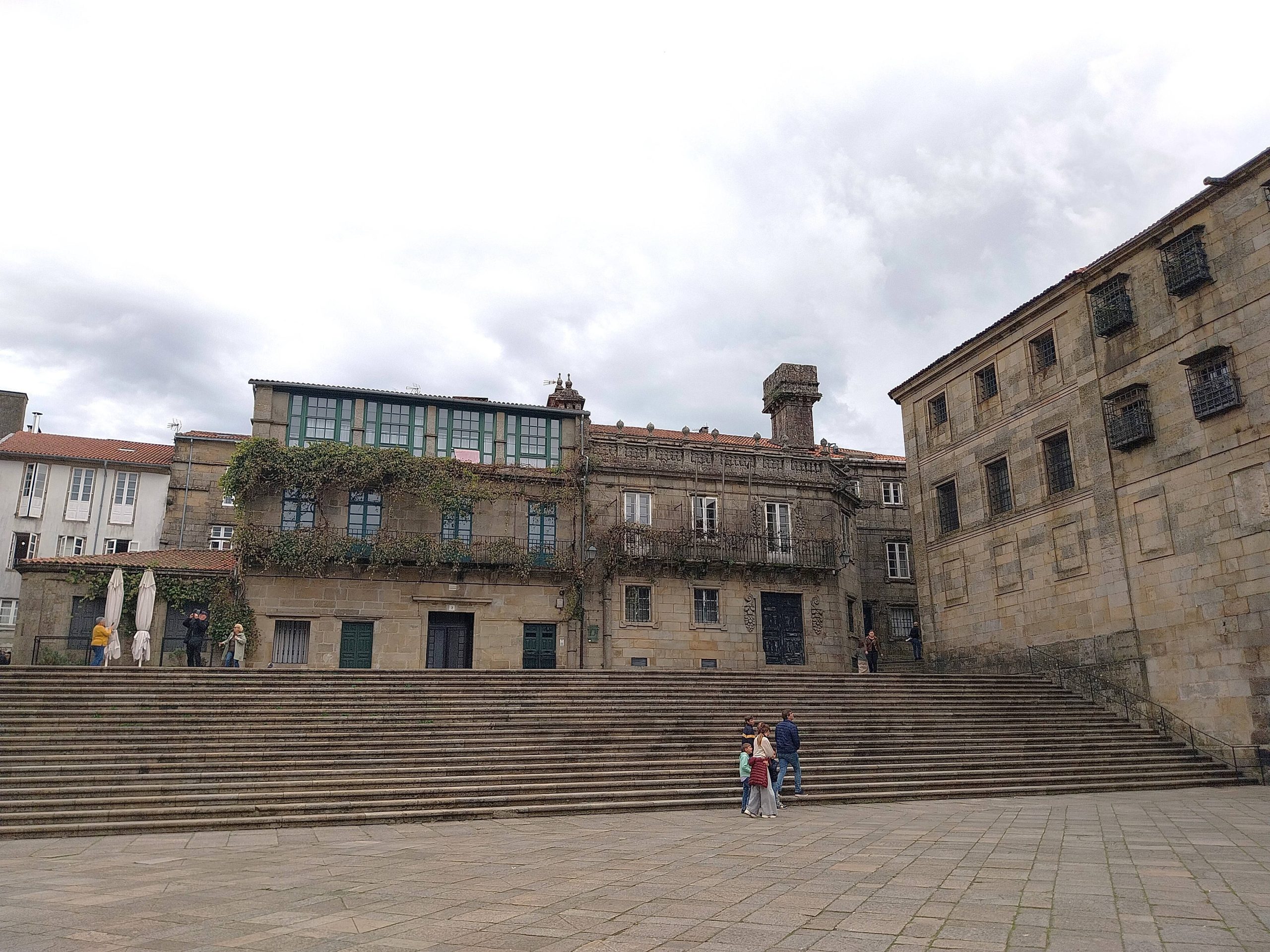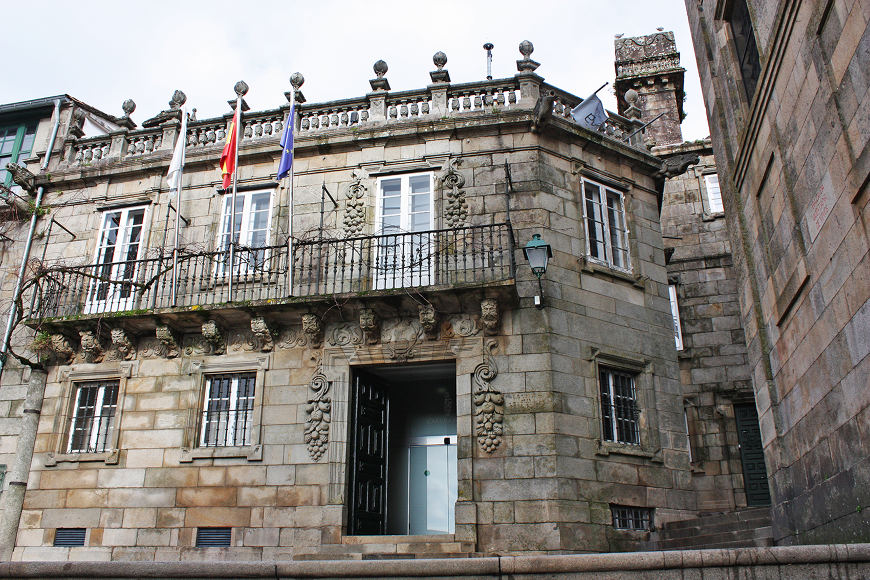 | Frente septentrional de la plaza da Quintana, con la casa da Parra a la derecha de la imagen. |