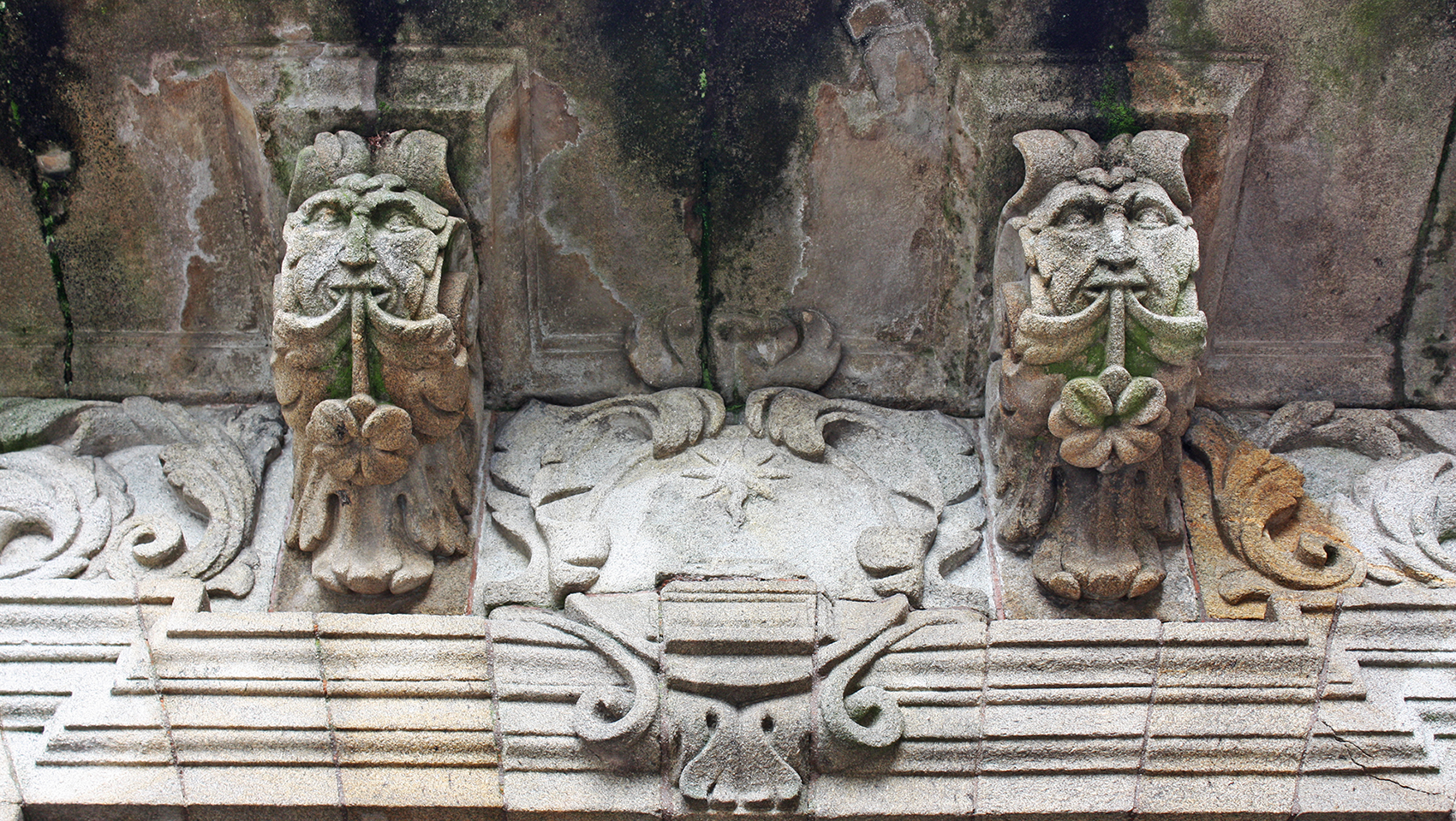 Bajo el tejaroz discurre un entablamento de severa geometría, que contrasta con las figuras de las gárgolas que asemejan animales fantásticos. Sobre la línea del tejado destaca el tiro de una gran chimenea con llamativa decoración.