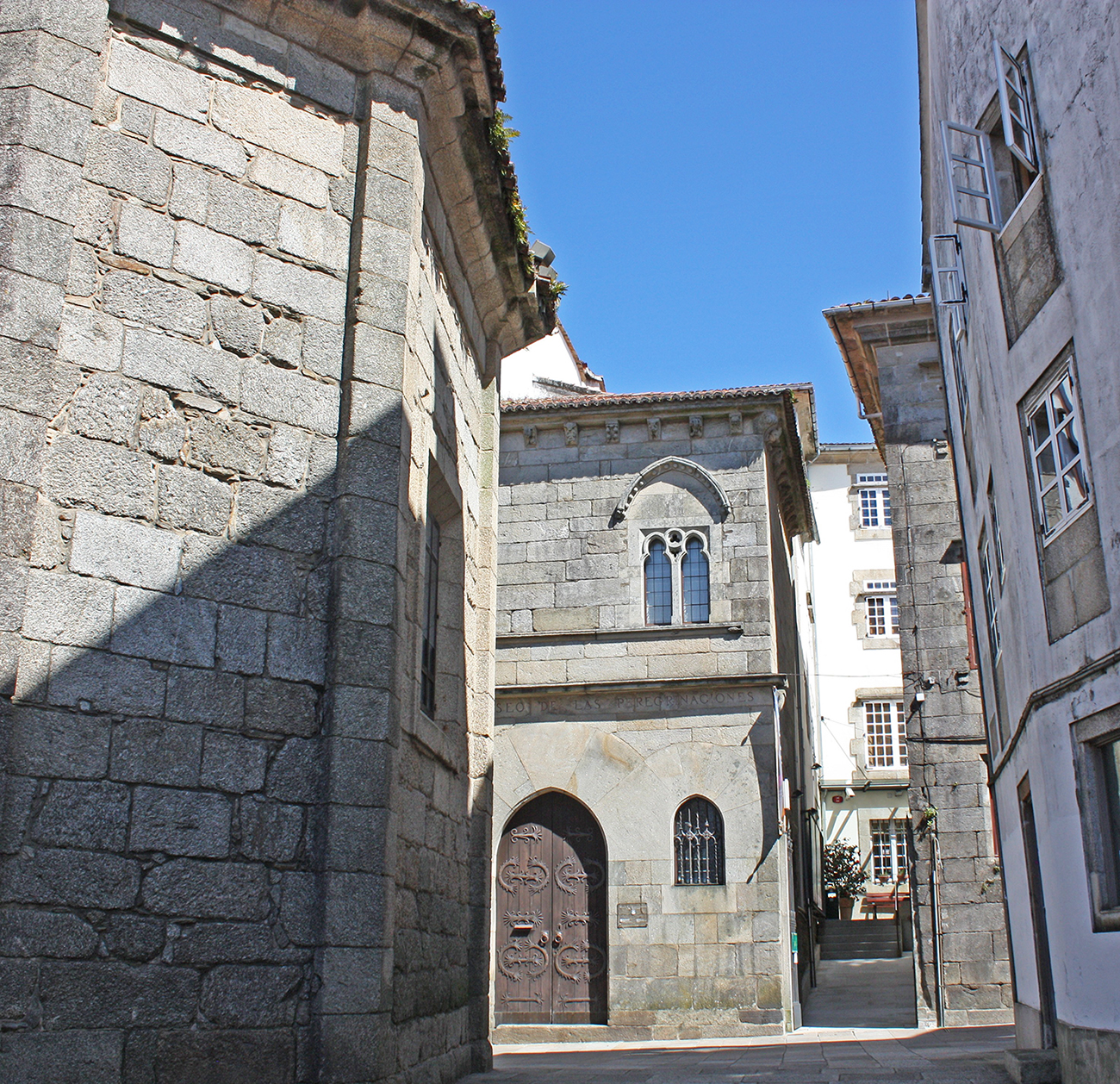 Nos dice Atanasio López que la casa de esa callejuela que ostenta el escudo de los Fonseca es, según la tradición, donde estuvo el antiguo hospital y el monasterio de monjas terciarias de Santa Cristina da Pena.